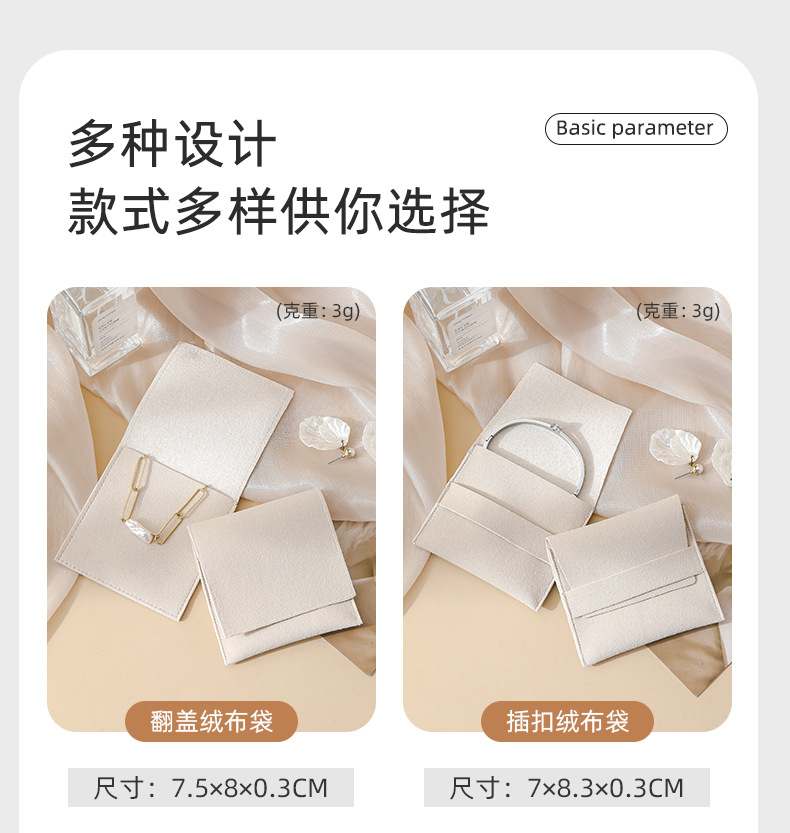 Specifications and models: apricot flap flannel bag 7.5*8*0.3; Jewelry storage bag