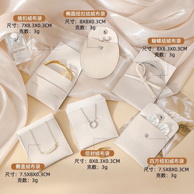 Specifications and models: apricot square button flannel bag 7.5*8; Jewelry storage bag