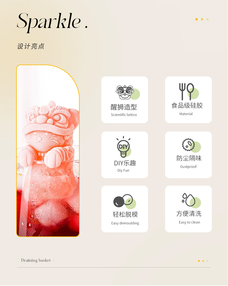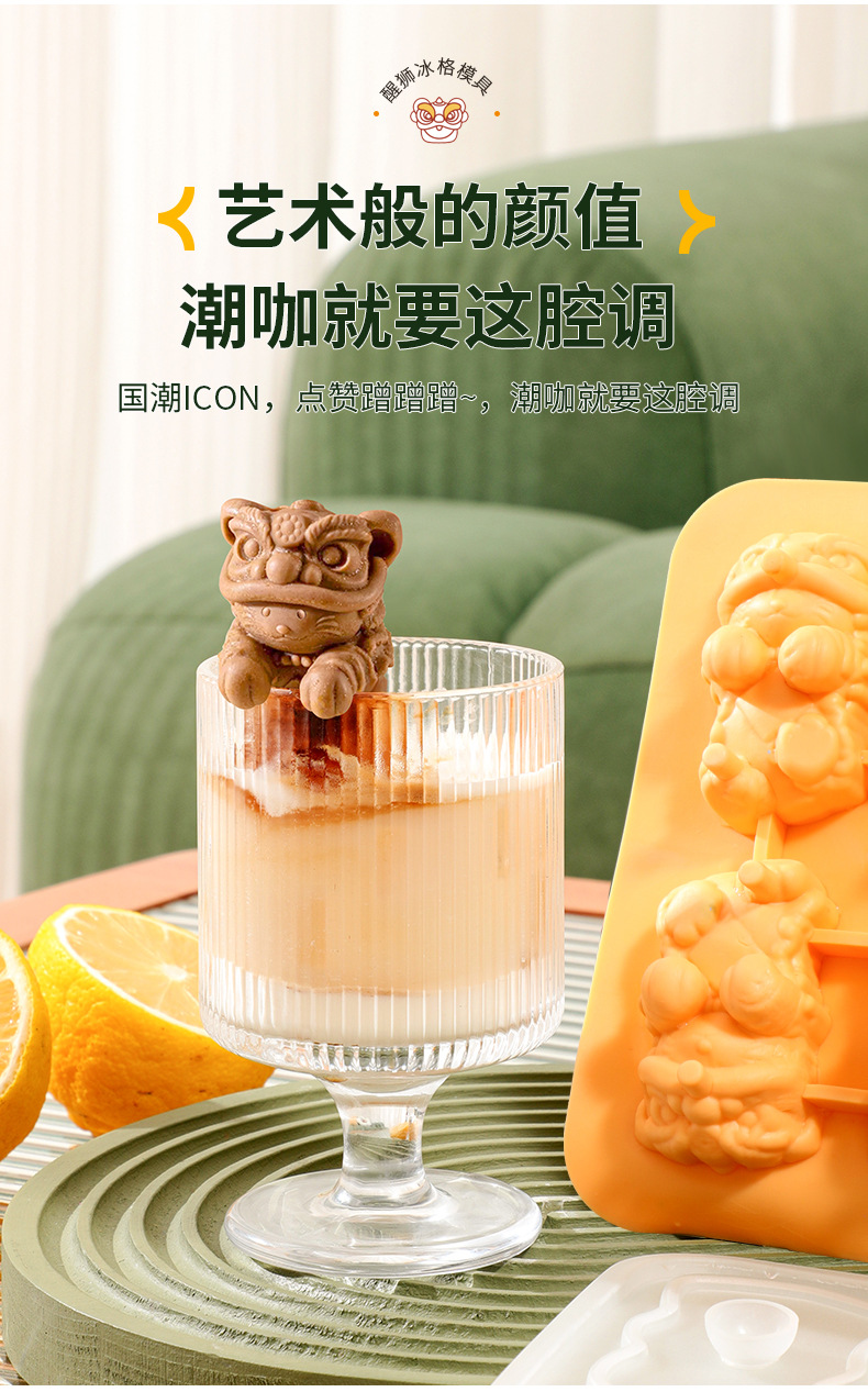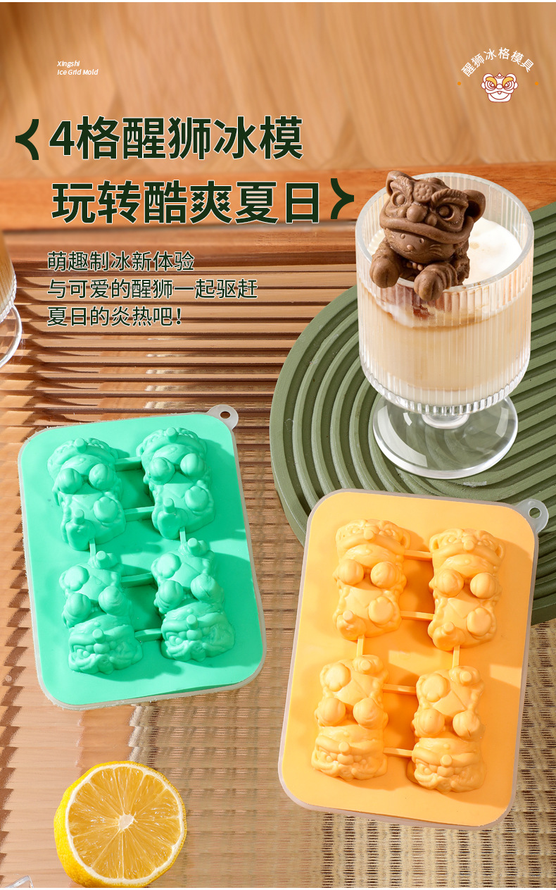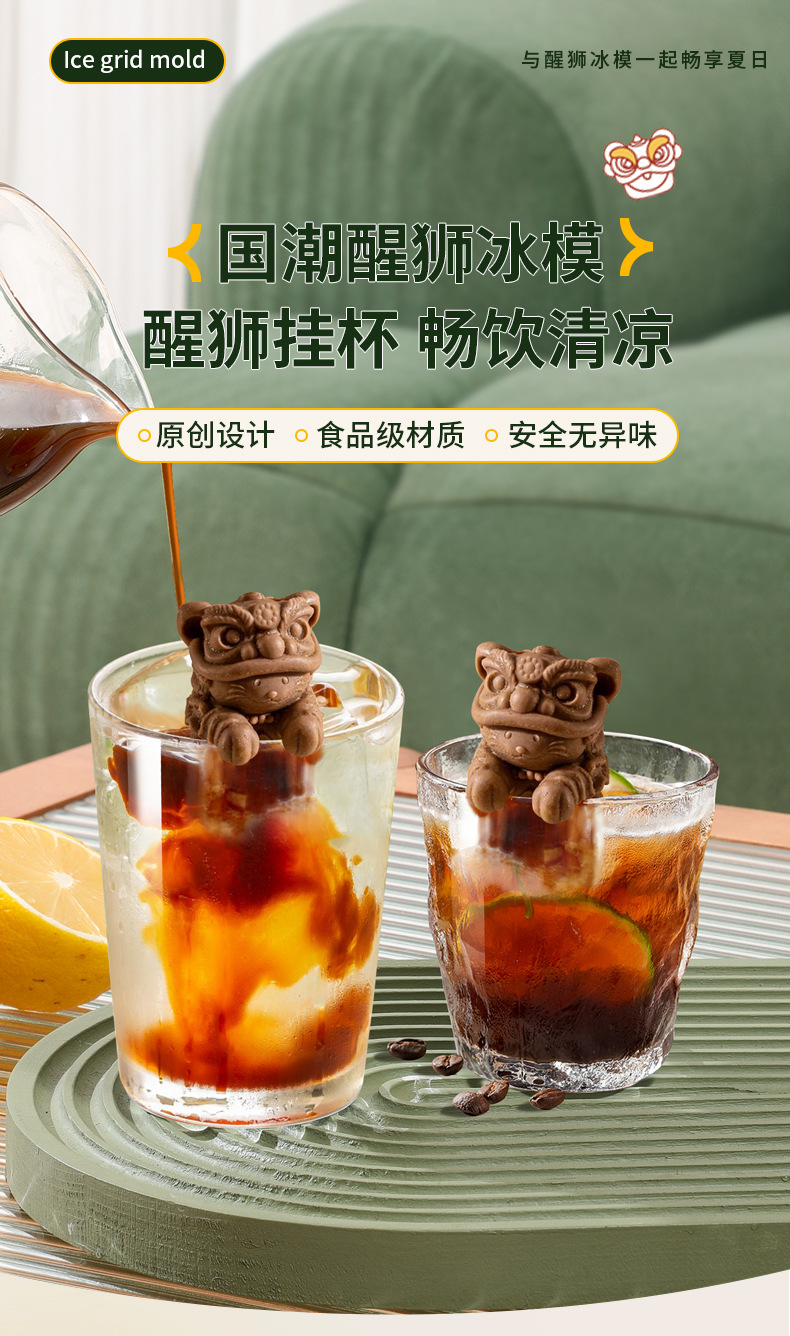 Cross-border silicone ice mold hanging cup cute lion ice mold homemade three-dimensional ice coffee beverage ice box