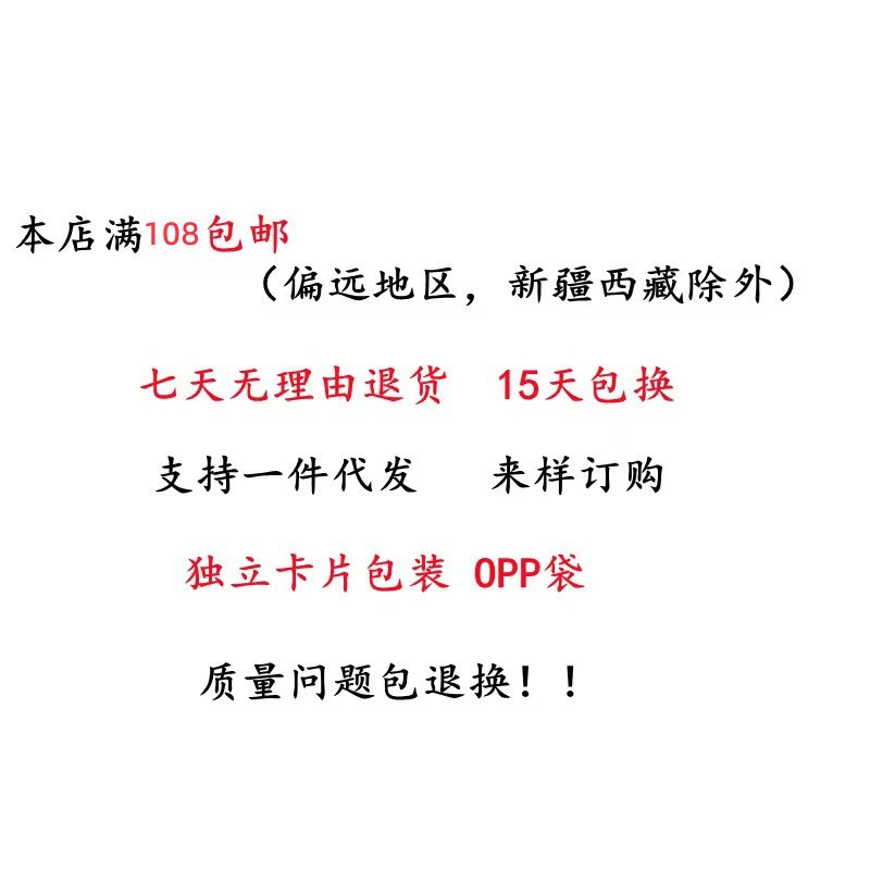 本厂专业饰品批发,产品批量生产,基本上手工加工,不同批次产品可能会有细微差异,微小瑕疵(不影响销售)无法避免,建议先拿样看货,大家都应该明白一分钱一分货的道理,不要凭自己的想像,每个人的想像都是无限大,这个我们满足不了,请见谅!对于质量非常苛刻的客户,请到专柜购买!
