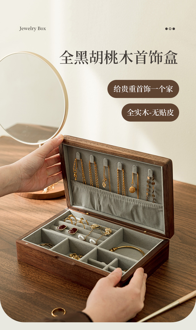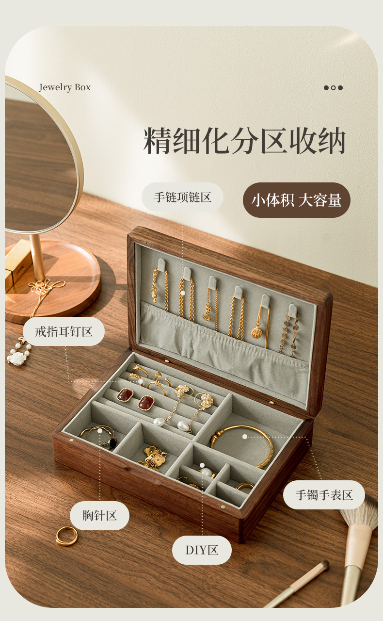Customized Black Walnut Jewelry Storage Box Necklace Earrings Earrings Solid Wood 2025 New Jewelry Storage High-End