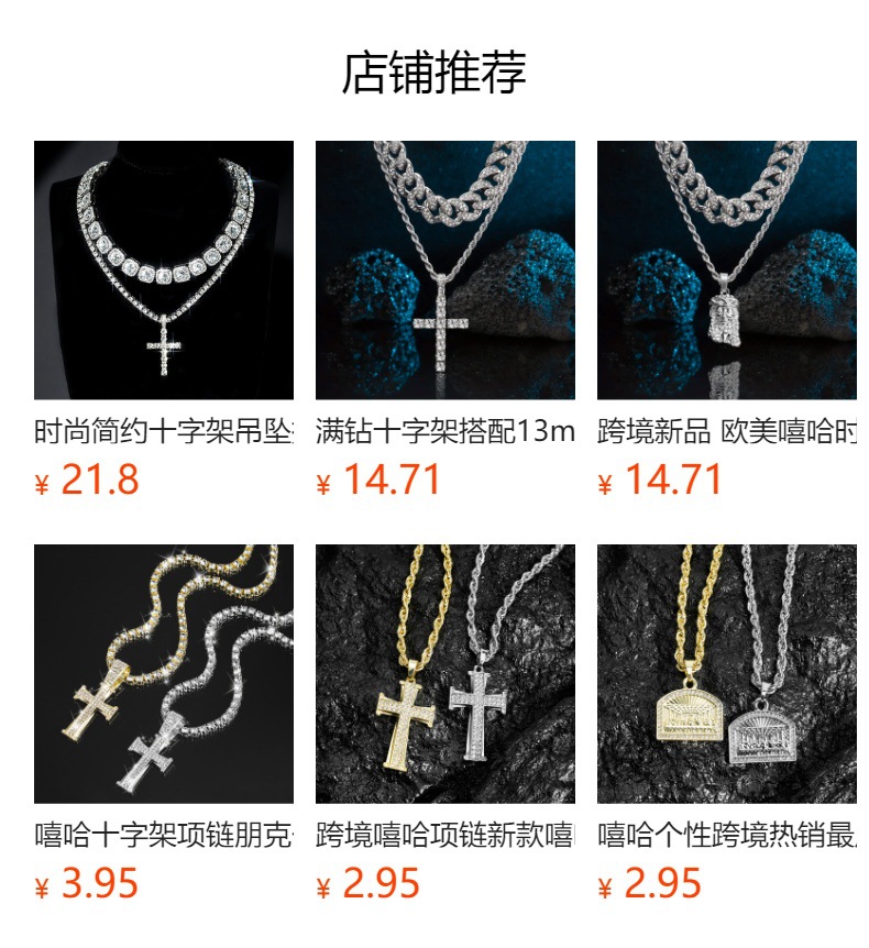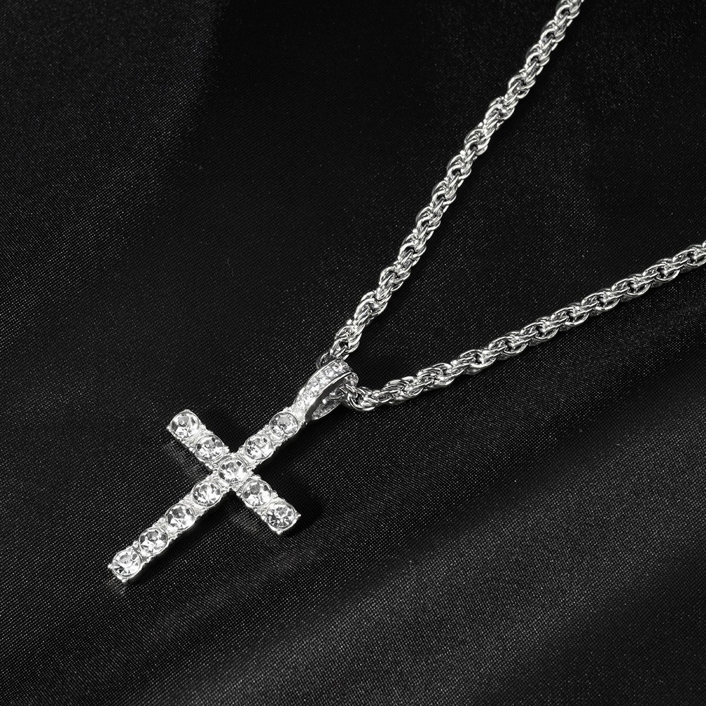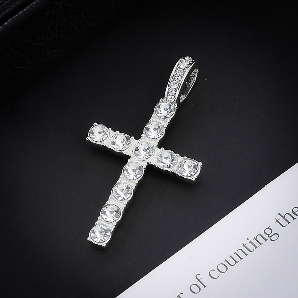 European and American Hip-Hop Diamond Cross Pendant Necklace Cuban Chain Necklace Full of Diamond Jewelry Row Diamond Tennis Chain Trendy Person