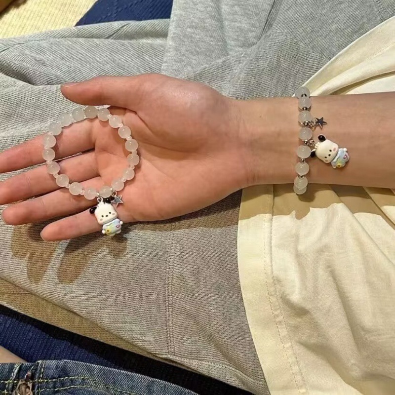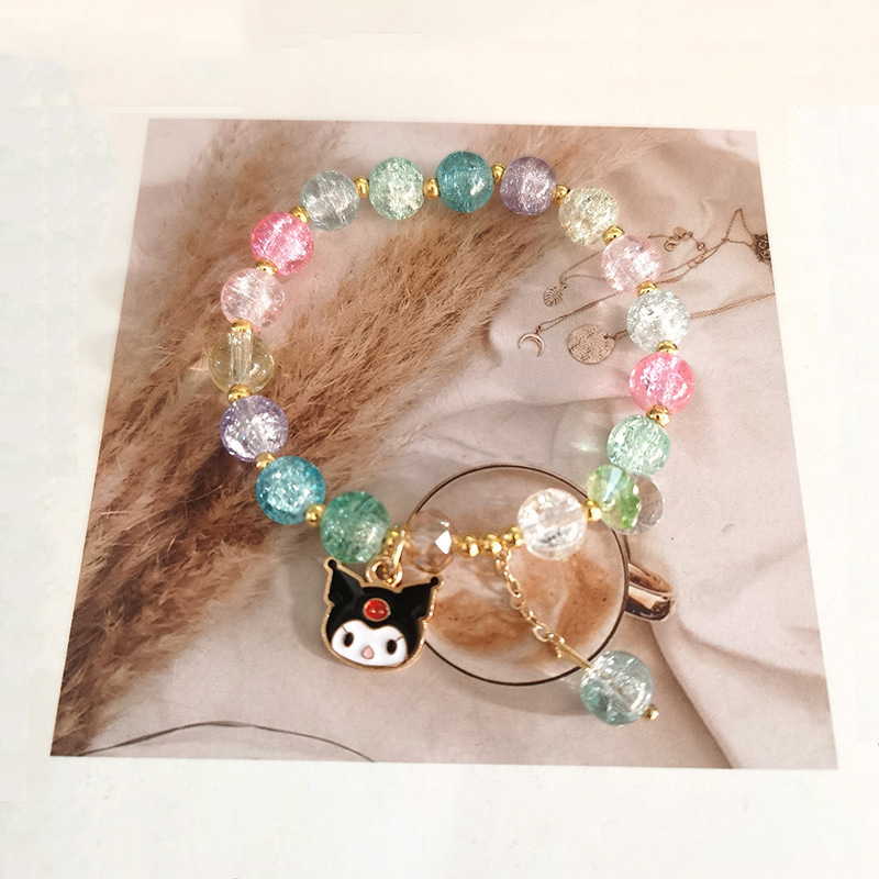 Color: Pink bamboo string pearl pink kuromi bracelet