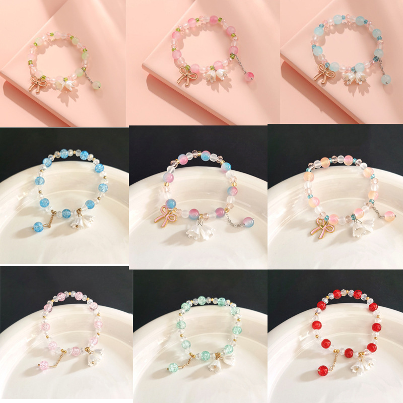 Color: L02 peach purple white bow lily of the valley flower bracelet