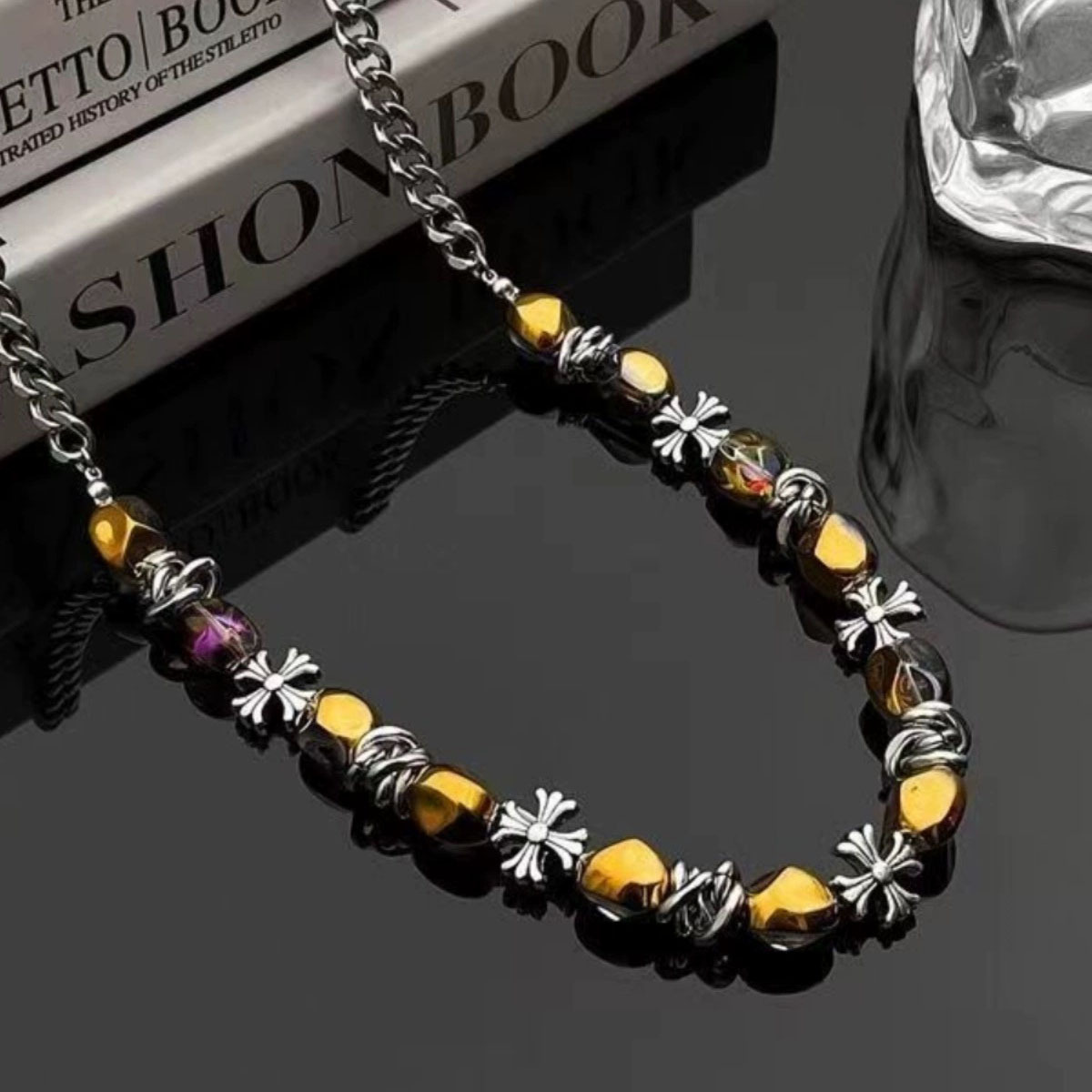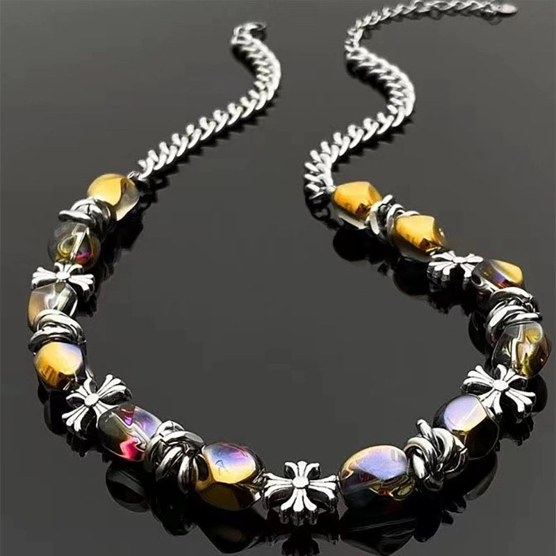 Hip-Hop Trendy Brand Cruckle Beaded Necklace Men's Niche Design Simple All-Match Collar Chain Woolen Chain Couple's Accessories