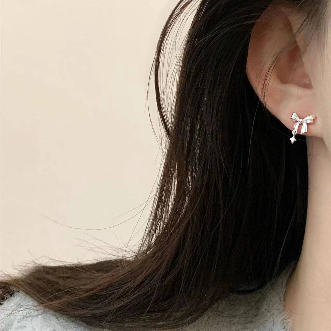 New Bow Star Earrings for Girls S925 Silver Ear Piercing Star Earrings Unique Design High-end Earrings