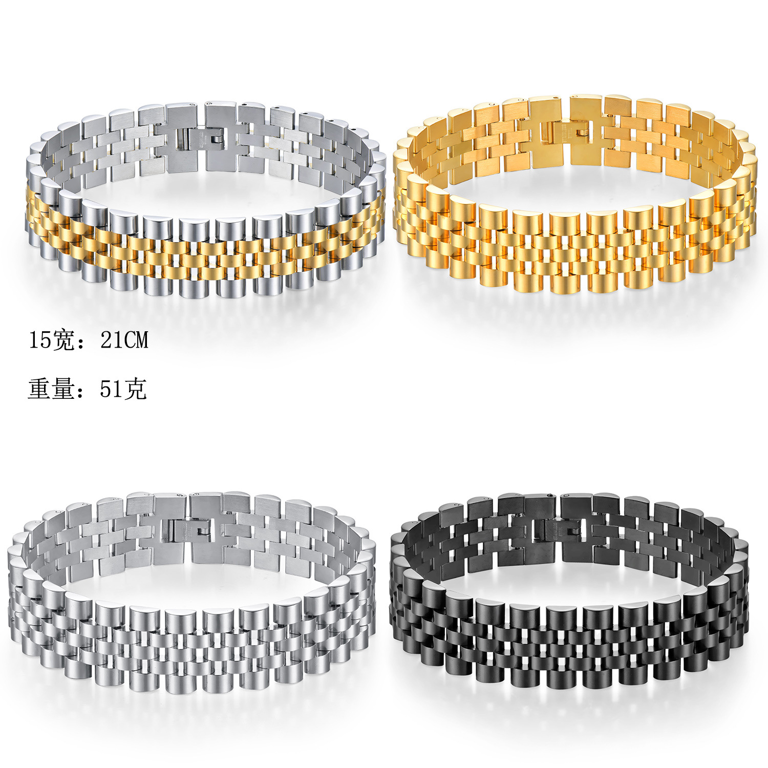 Cross-border jewelry wholesale European and American fashion 10mm15mm stainless steel strap men's bracelet adjustable couple bracelet