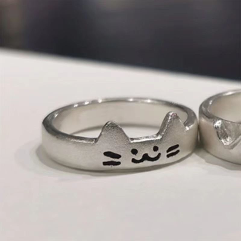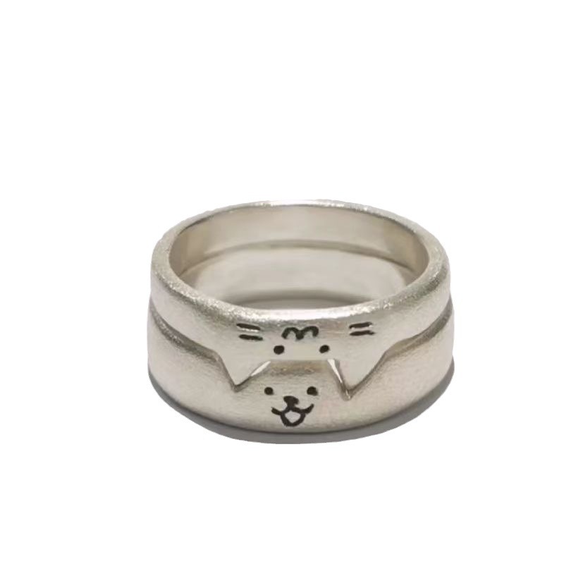 Little Red Book Same Style Ring Kitten and Puppy Can Couple Pair Ring Overlay Cute Girlfriend Ring Simple All-match