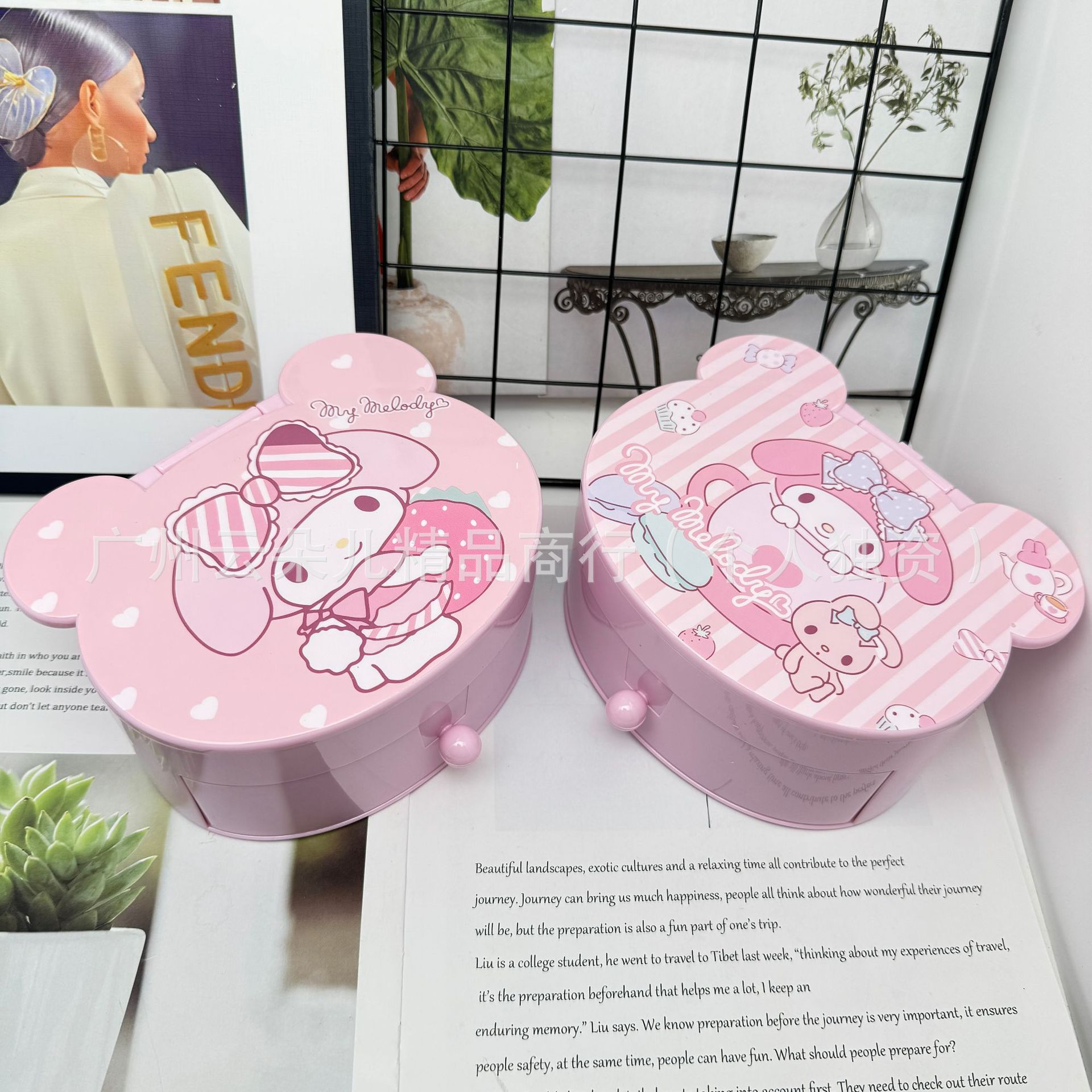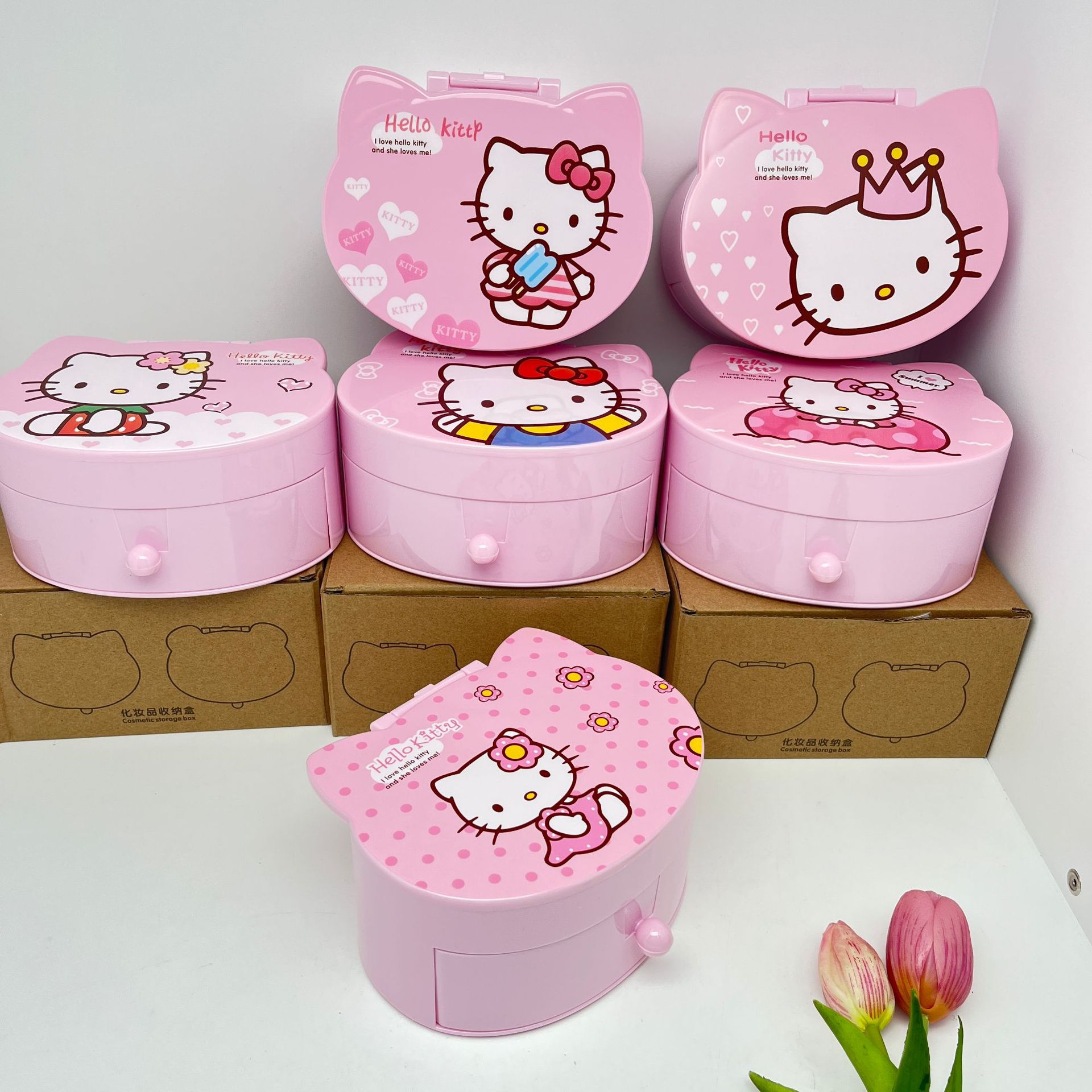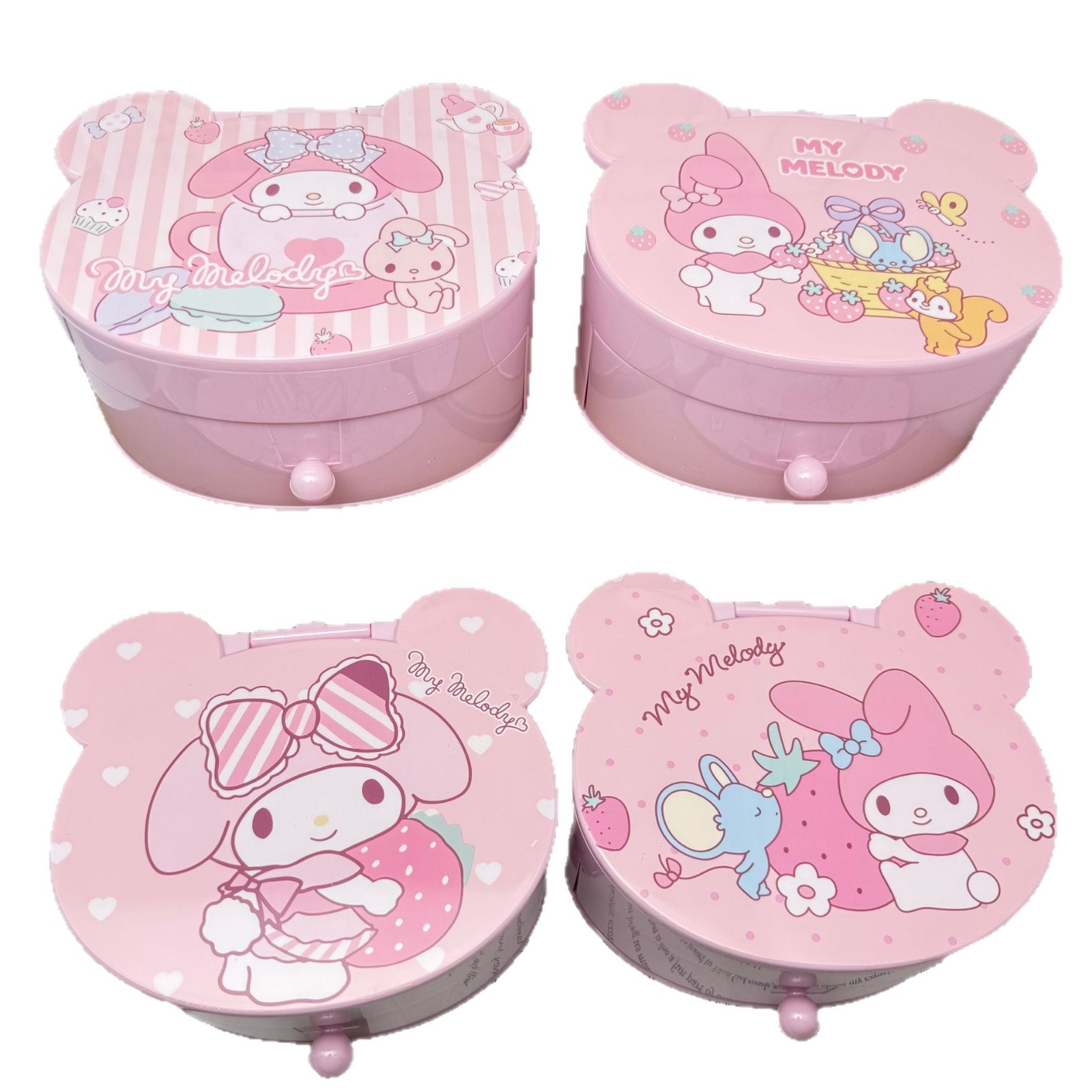 Cute Girly Heart Melody Jewelry Box Children's Holiday Gift Plastic Small Box Mirror Jewelry Storage Box