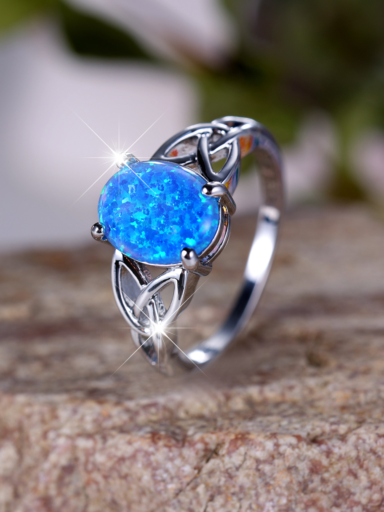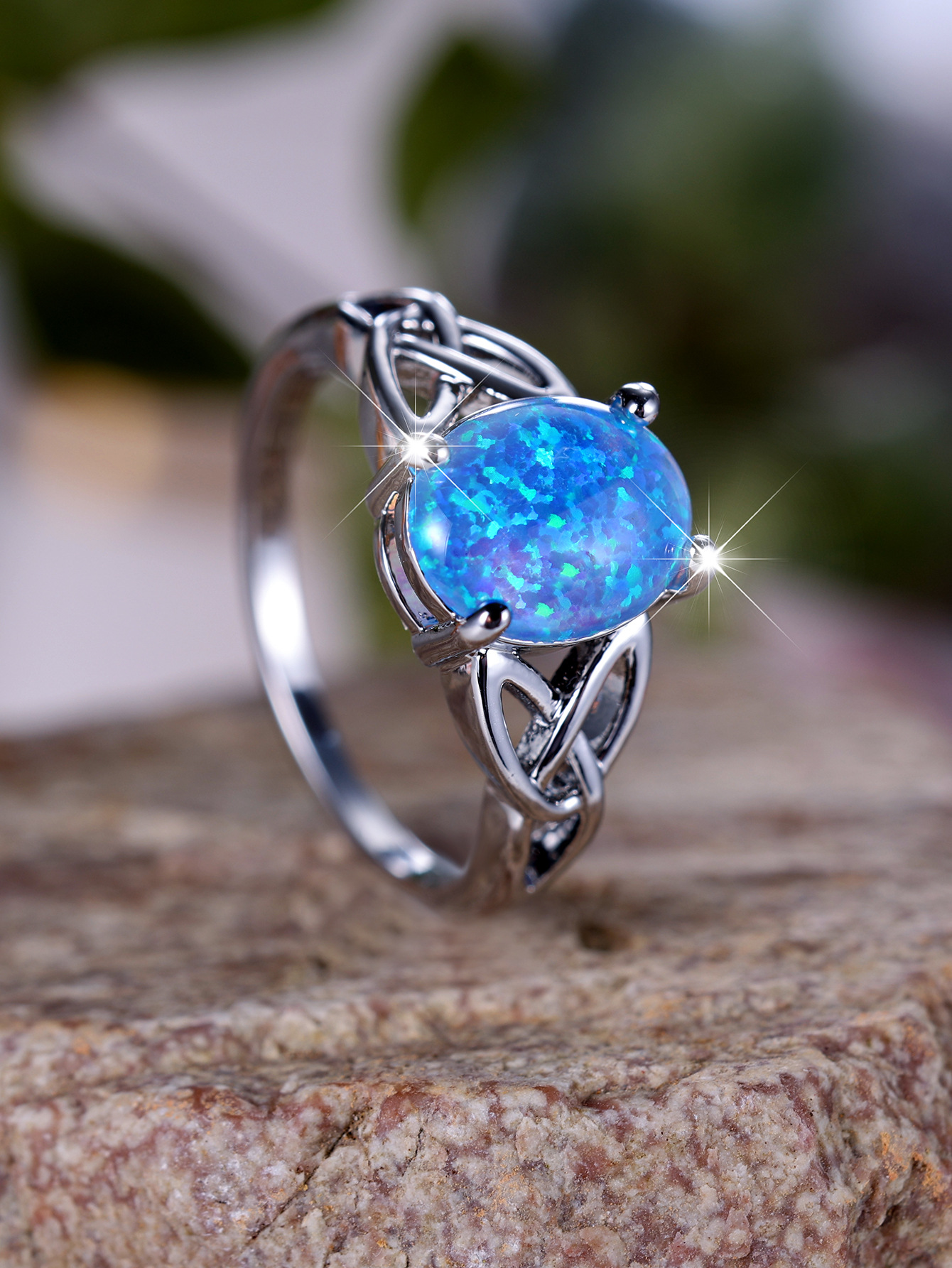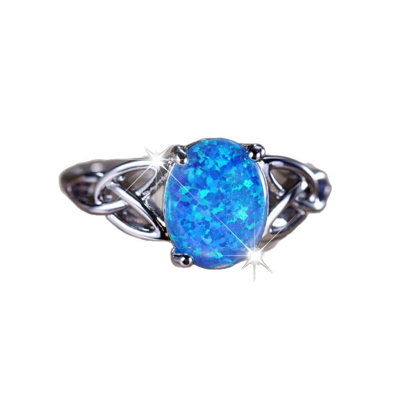 Cross-Border Wish Aliexpress Fashion Commuter Palladium White K Egg-Shaped Blue Opal Edge Cross Ring Manufacturer Supply Wholesale