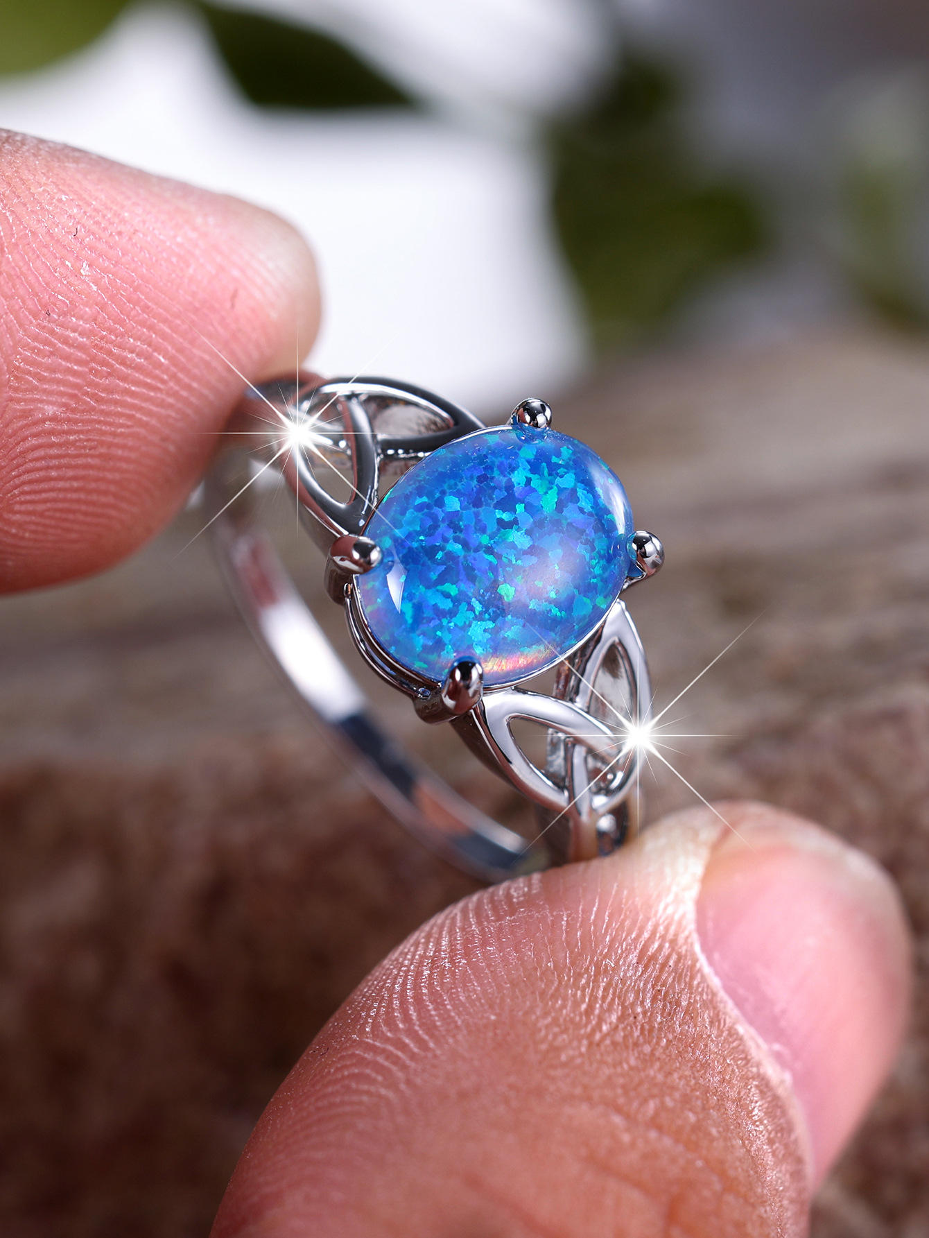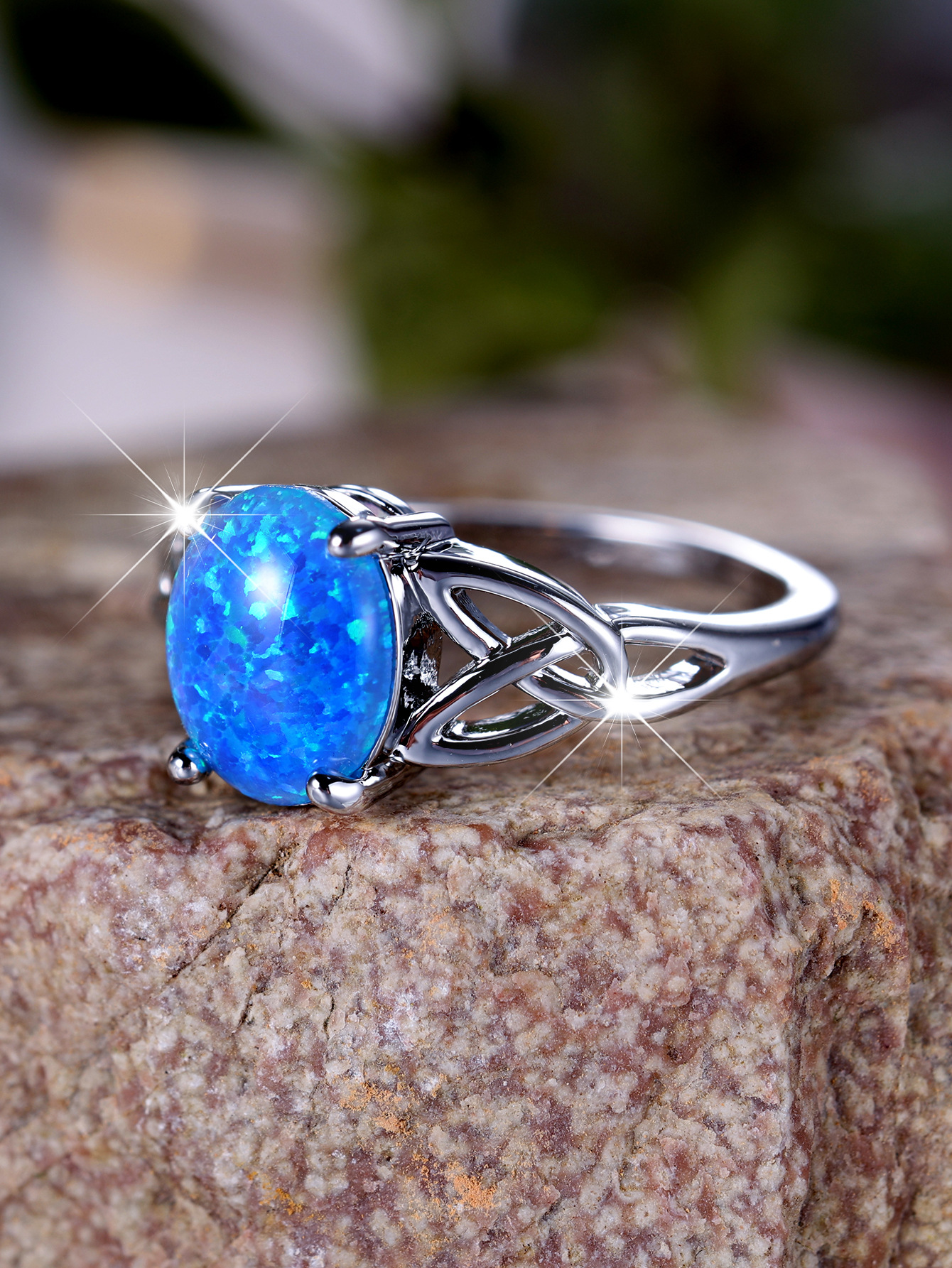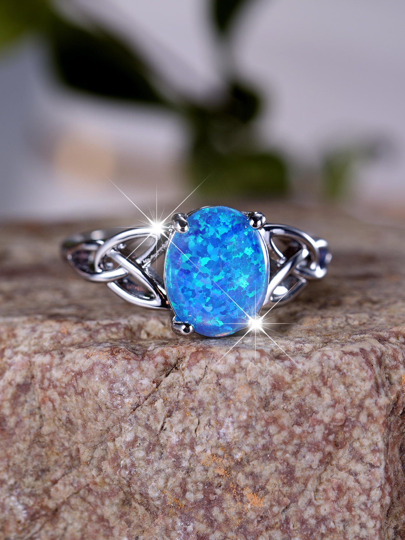 Cross-Border Wish Aliexpress Fashion Commuter Palladium White K Egg-Shaped Blue Opal Edge Cross Ring Manufacturer Supply Wholesale