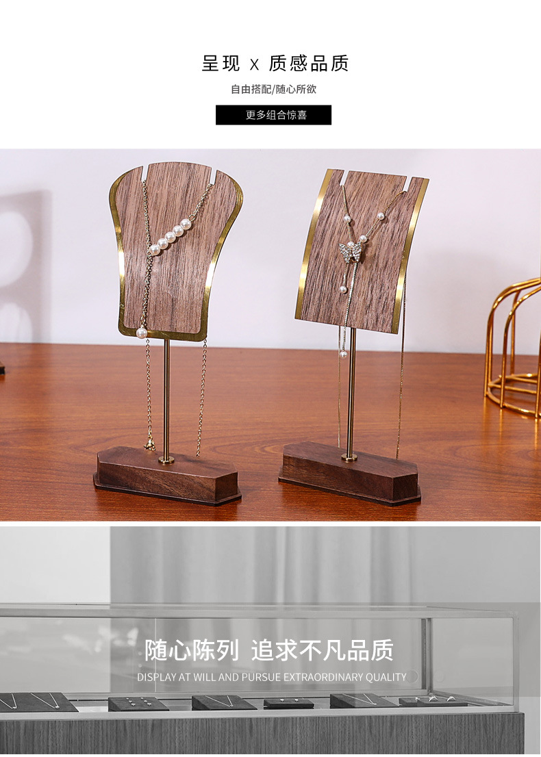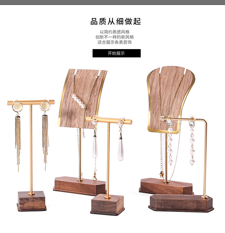 Walnut Metal Earrings Earrings Display Stand Pendant Necklace Hanger Mini Jewelry Store Jewelry Storage Rack Wholesale