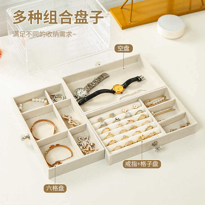 Cross-border Explosions Three-layer Flannel Jewelry Storage Box Earrings Earrings Storage Box Jewelry Dust-proof Drawer-type Jewelry Box