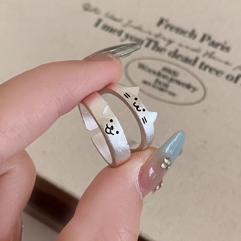 Little Red Book Same Style Ring Kitten and Puppy Can Couple Pair Ring Overlay Cute Girlfriend Ring Simple All-match