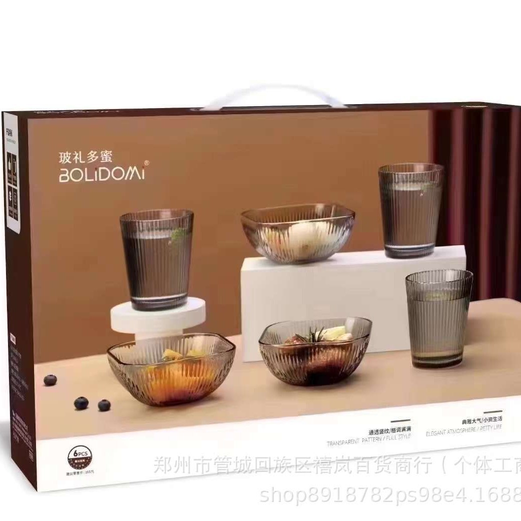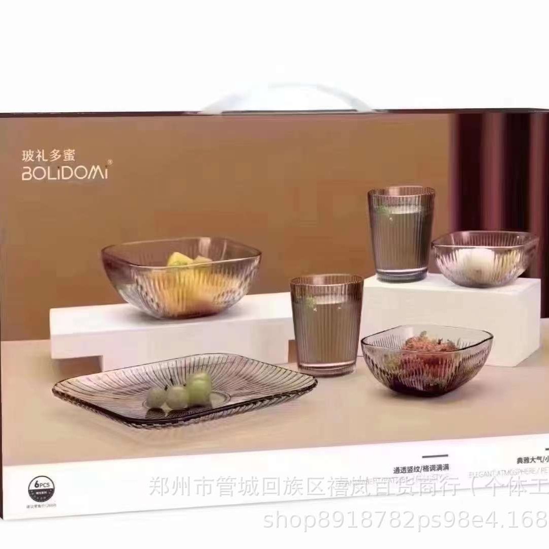 Color: Six-piece bowl and plate set, 8 sets in one box