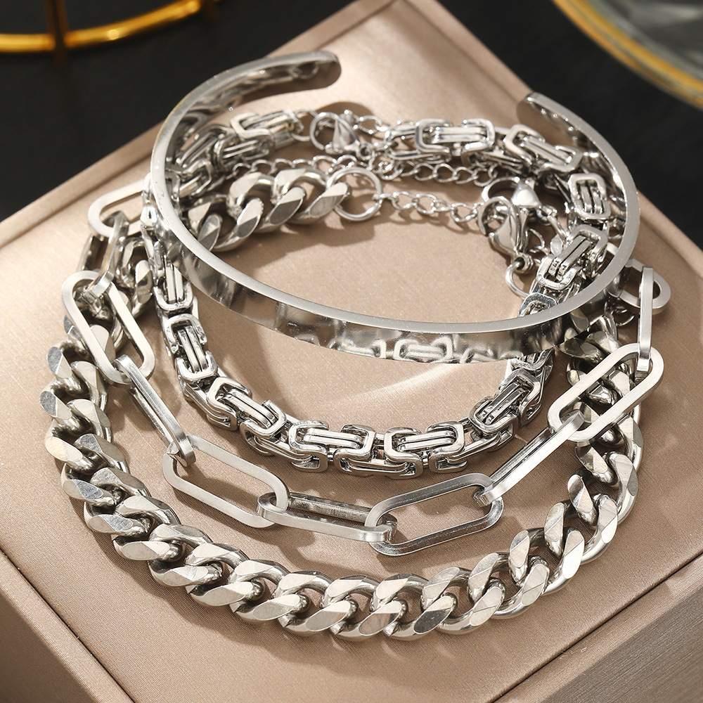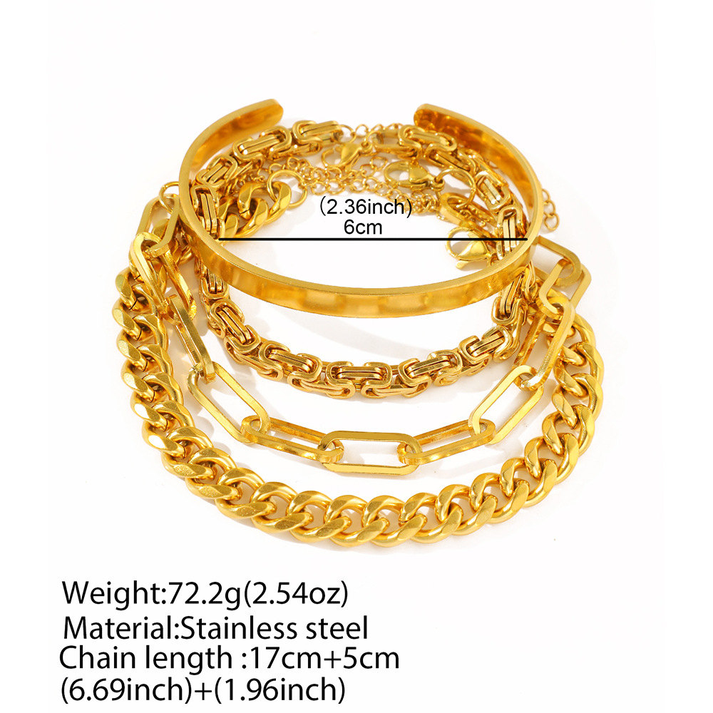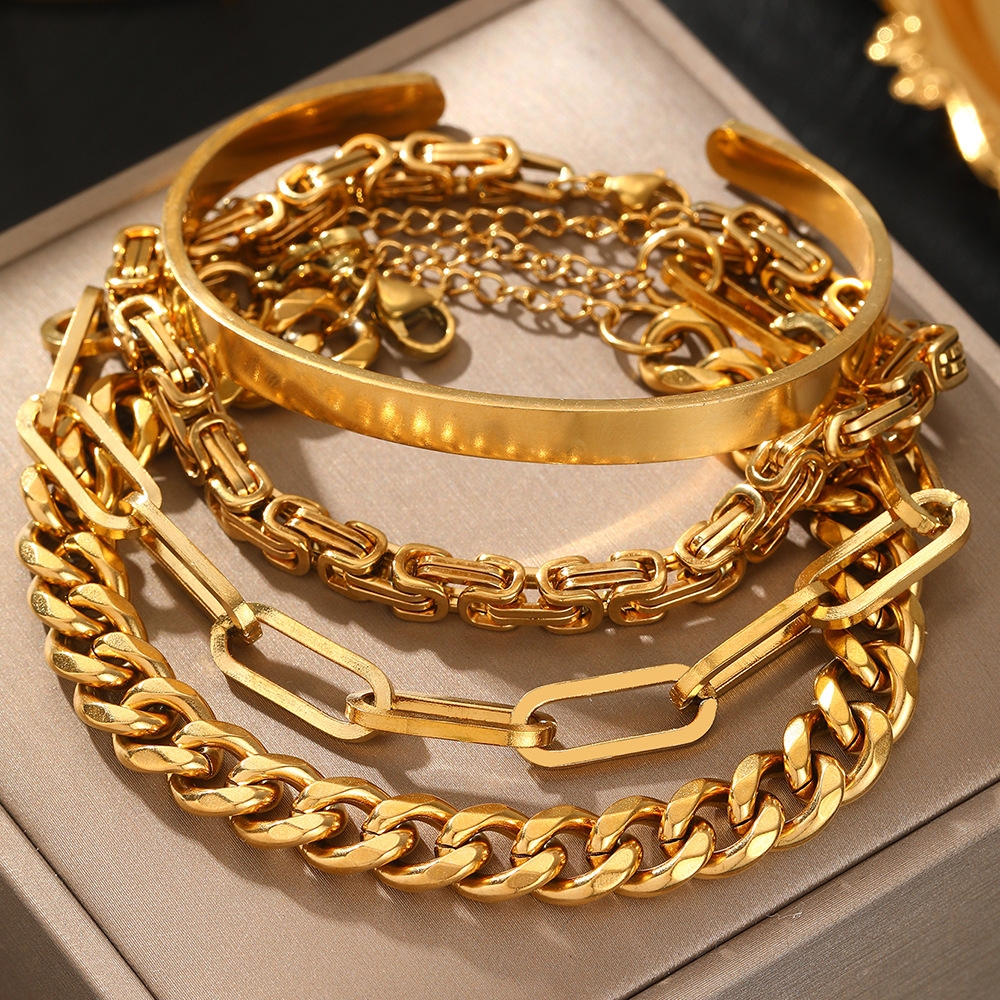 European and American ins style new titanium steel bracelet 18K gold double layer Cuban chain flat snake chain stainless steel jewelry bracelet for women