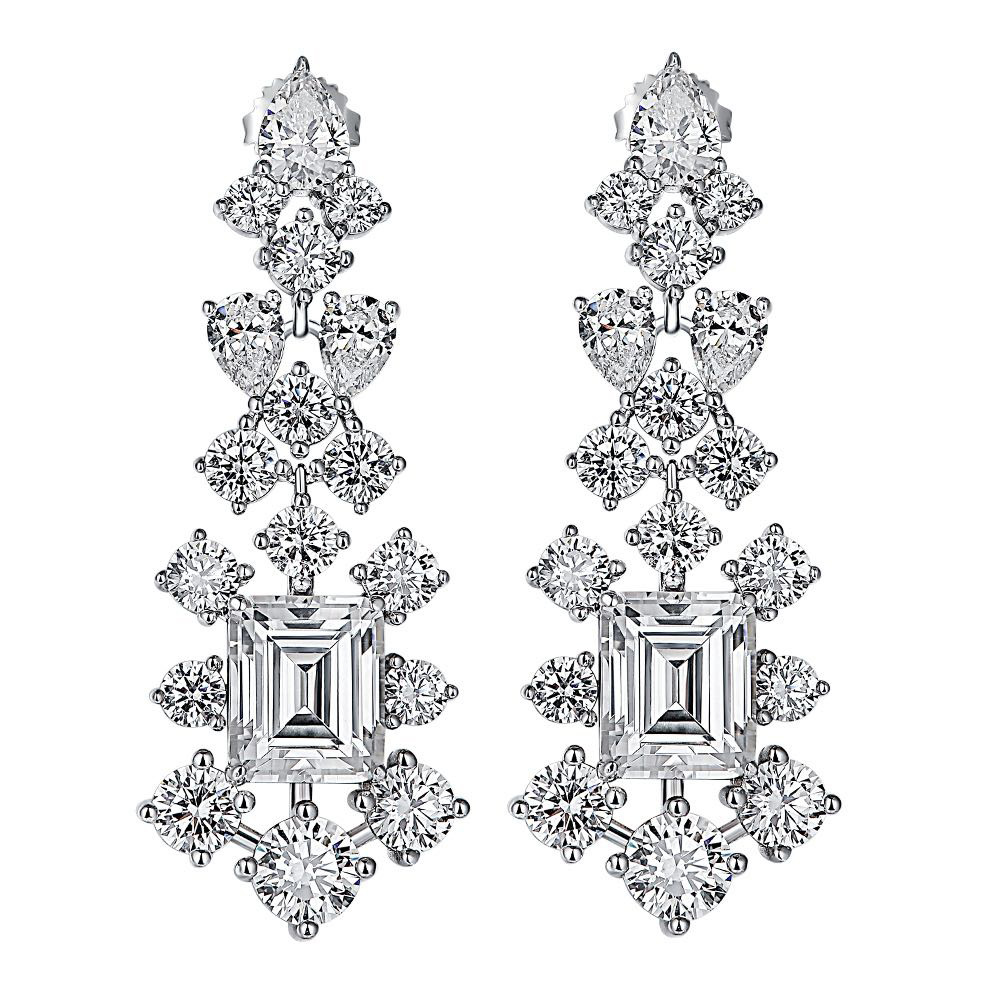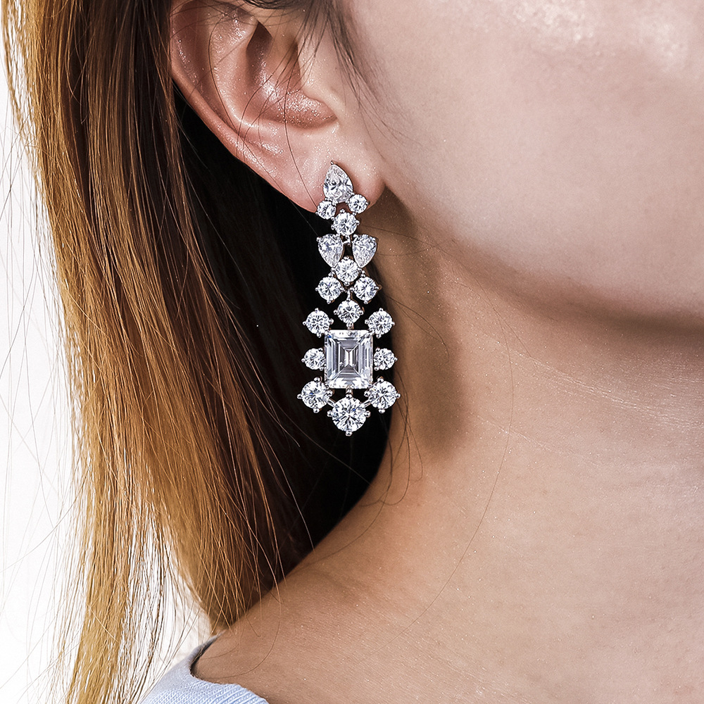 Cross-border Hot Sale S925 Silver Rectangle White Diamond Earrings Light Luxury High-end Ice Flower Cut High Carbon Diamond Earrings Tassel Earrings