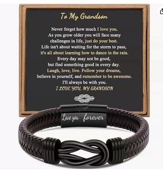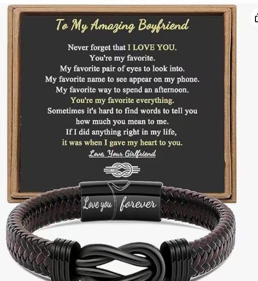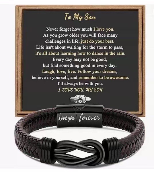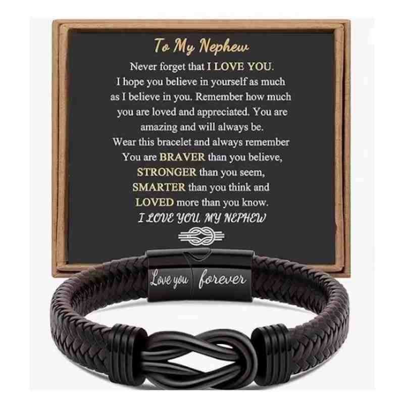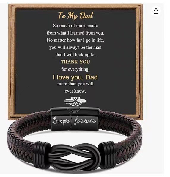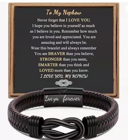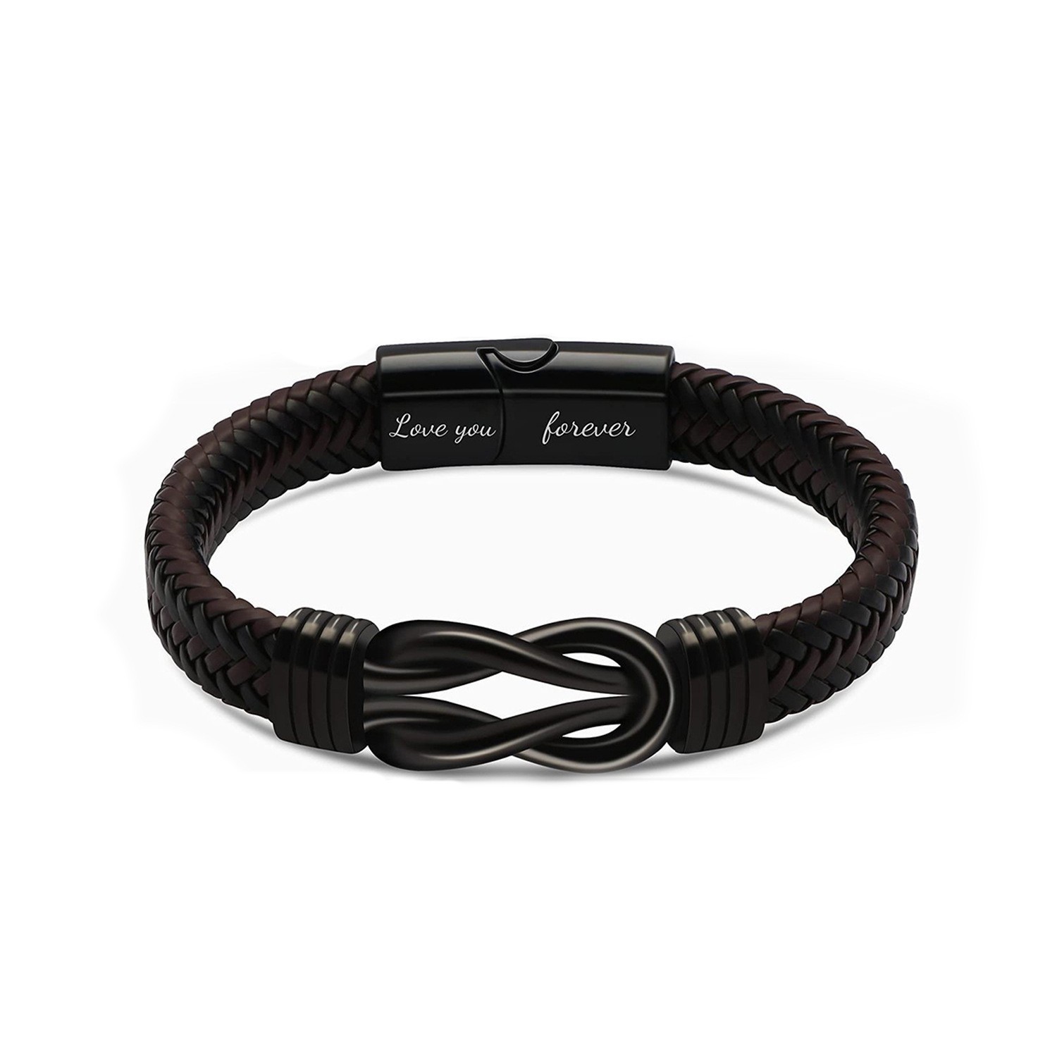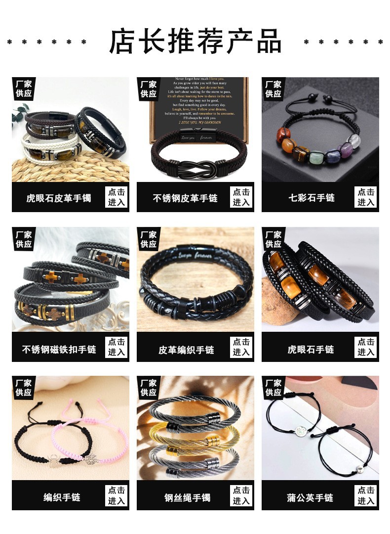 Processing Customized Magnetic Buckle Stainless Steel Leather Bracelet Hand-Woven Twist Style Stainless Steel Men's Bracelet with Engraving