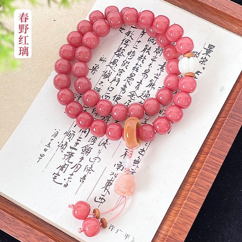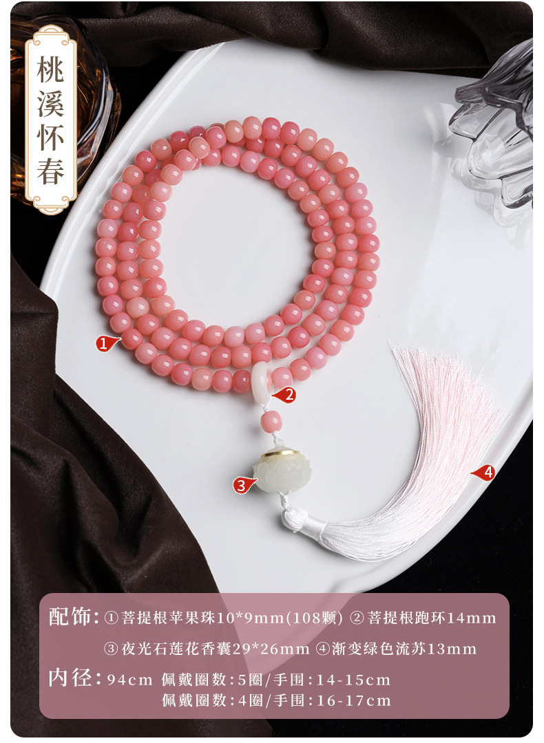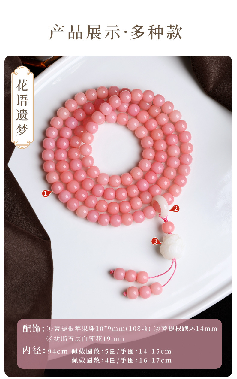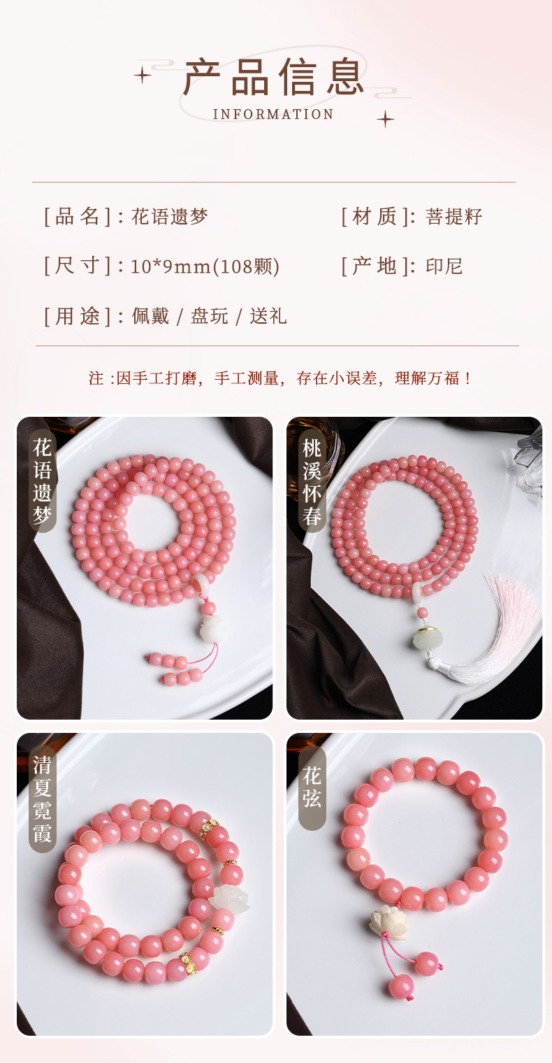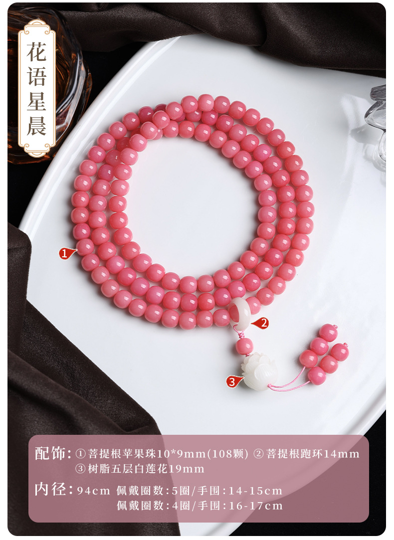 Natural powder flower language dream 108 design bodhi Wen play bracelet men's and women's beads rosary bracelet wholesale