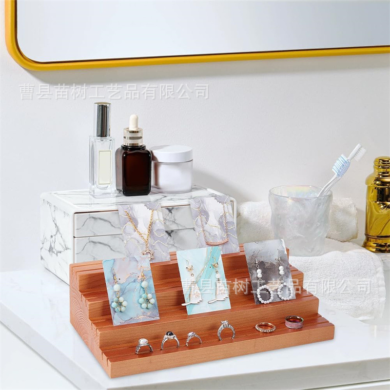 Wooden Earring Rack Necklace Jewelry Display Table Store Ornaments Card Slot Ring Bracket Cabinet Solid Wood Display Stand