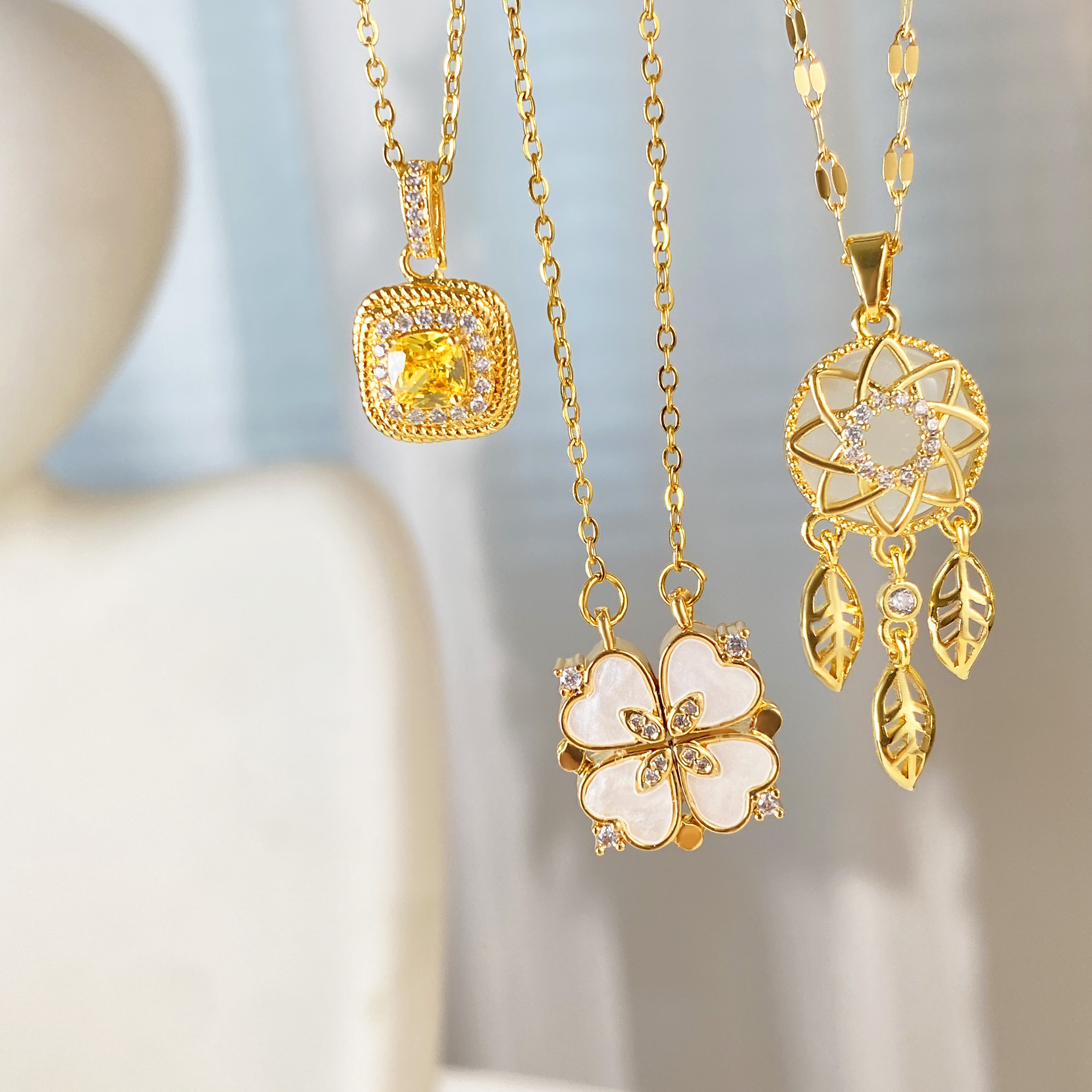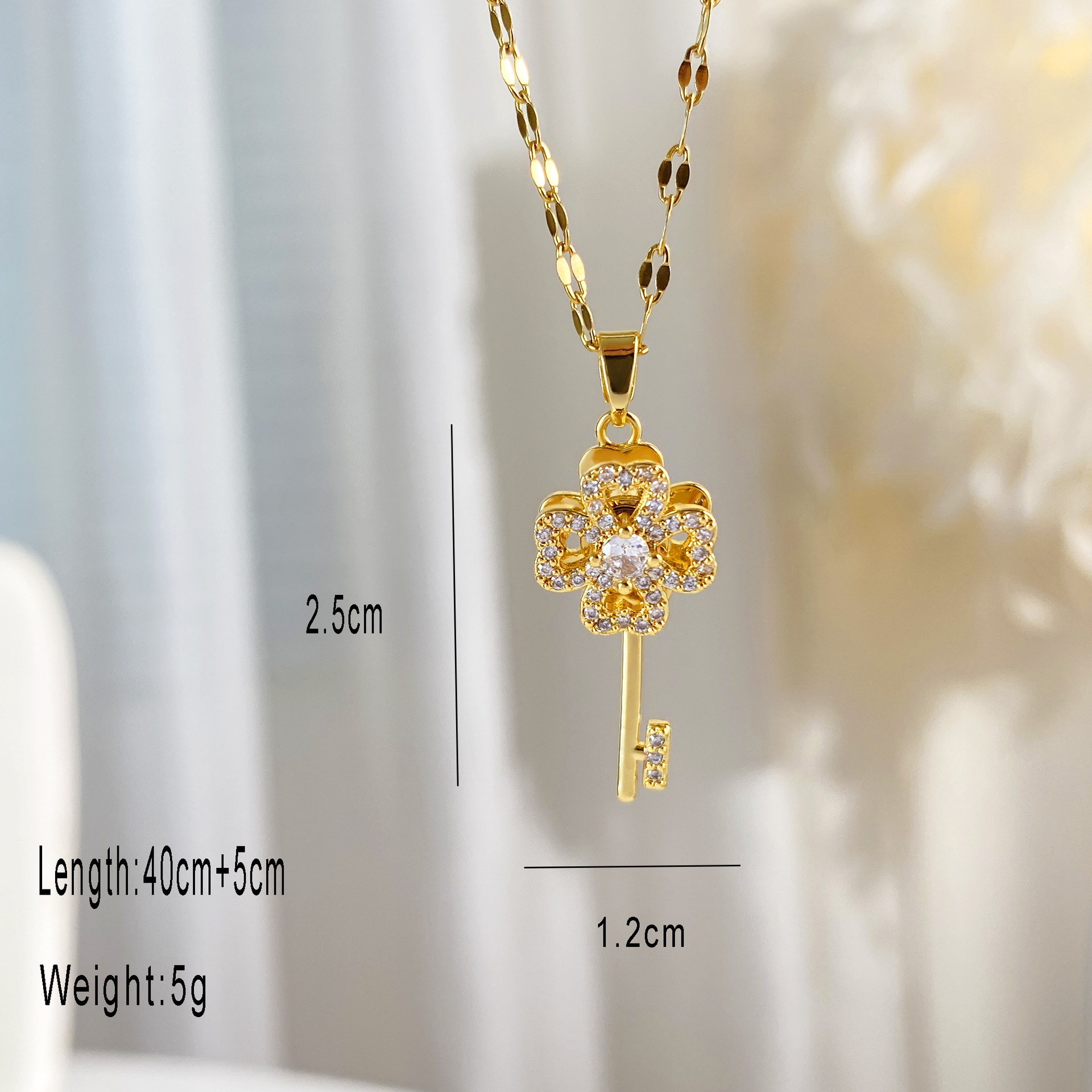 Color: Gold-micro-inlaid four-leaf flower key necklace