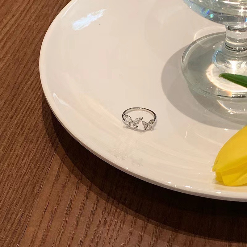 Korean Style Super Fairy Micro Zircon Butterfly Ring Women's Open Distinctive Niche Light Luxury High-grade Finger Ring Women's Fashion