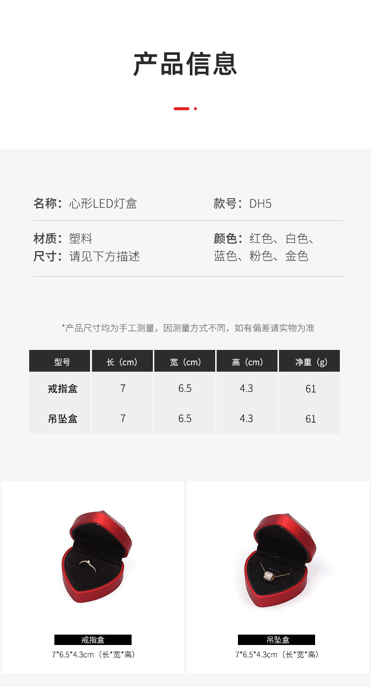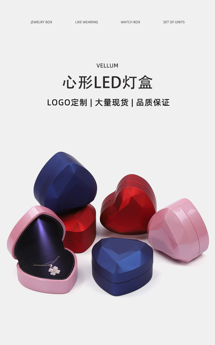 Heart Shaped Creative LED Light Jewelry Box Ring Box Jewelry Trinket Box Necklace Pendant Packaging Storage Box