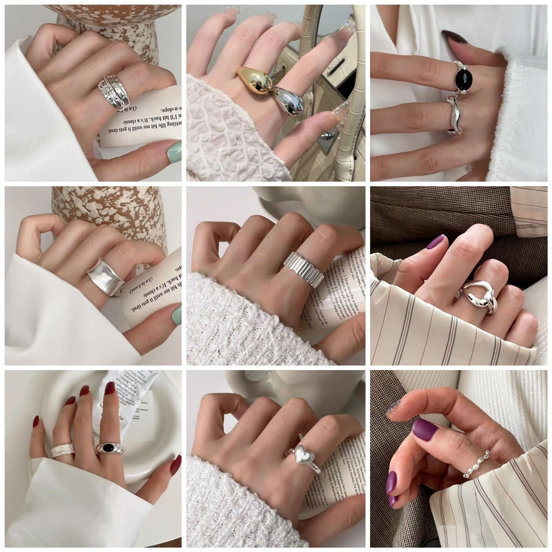 Irregular Heavy-Duty S925 Silver-Plated Open Ring for Women, Versatile Jewelry for Men, Yiwu Accessories, Geometric Style, Minimalist Style