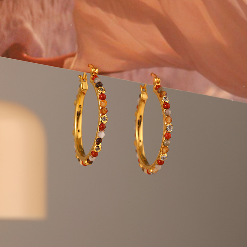 Original European and American Fashion Accessible Luxury Dopamine Natural Stone Earrings High-End Elegant Niche Retro Versatile Earrings for Women