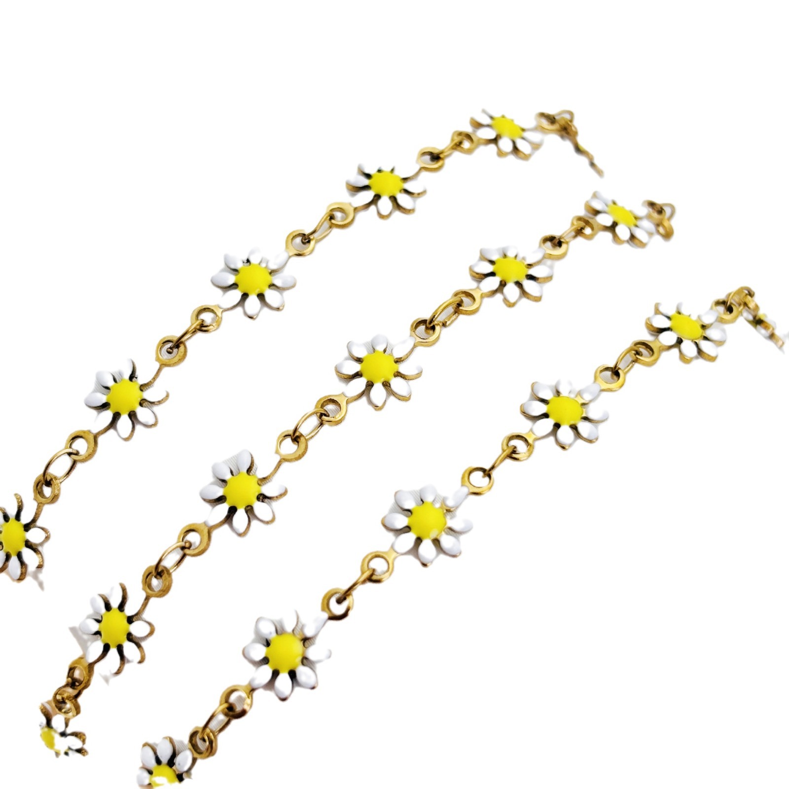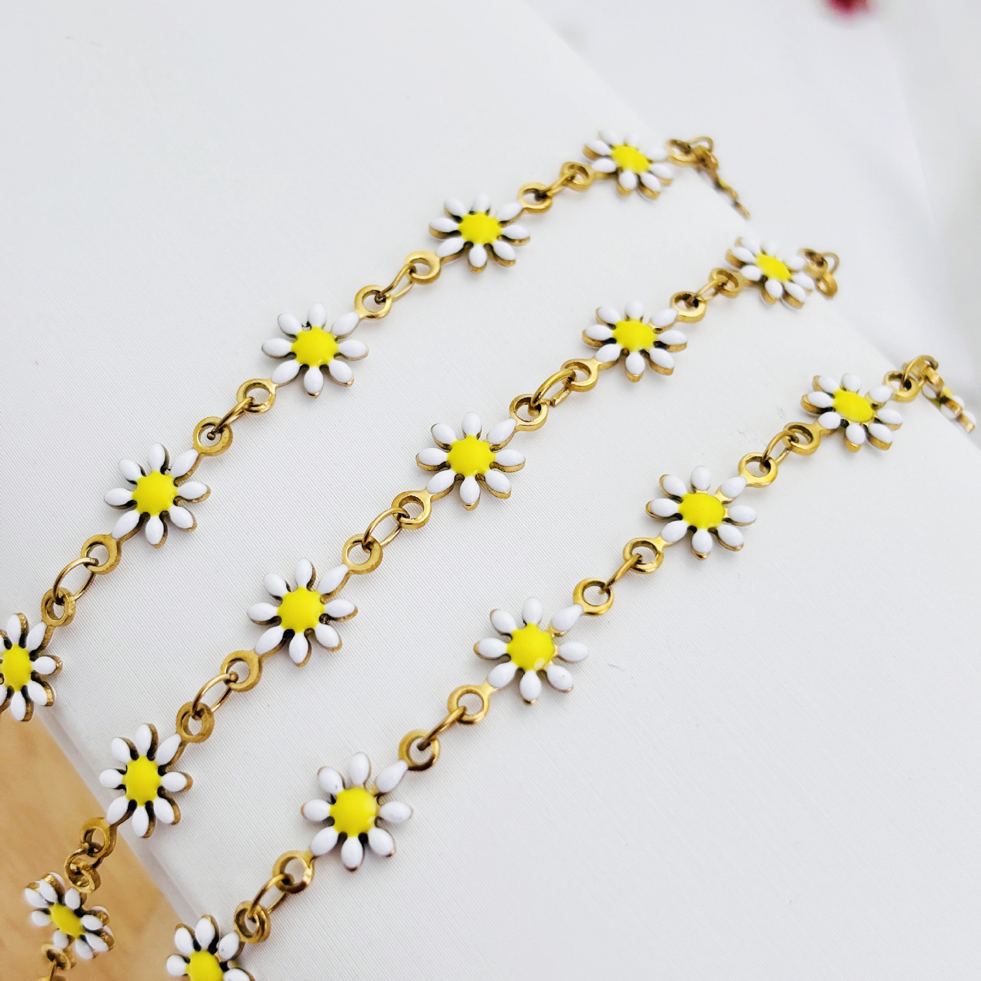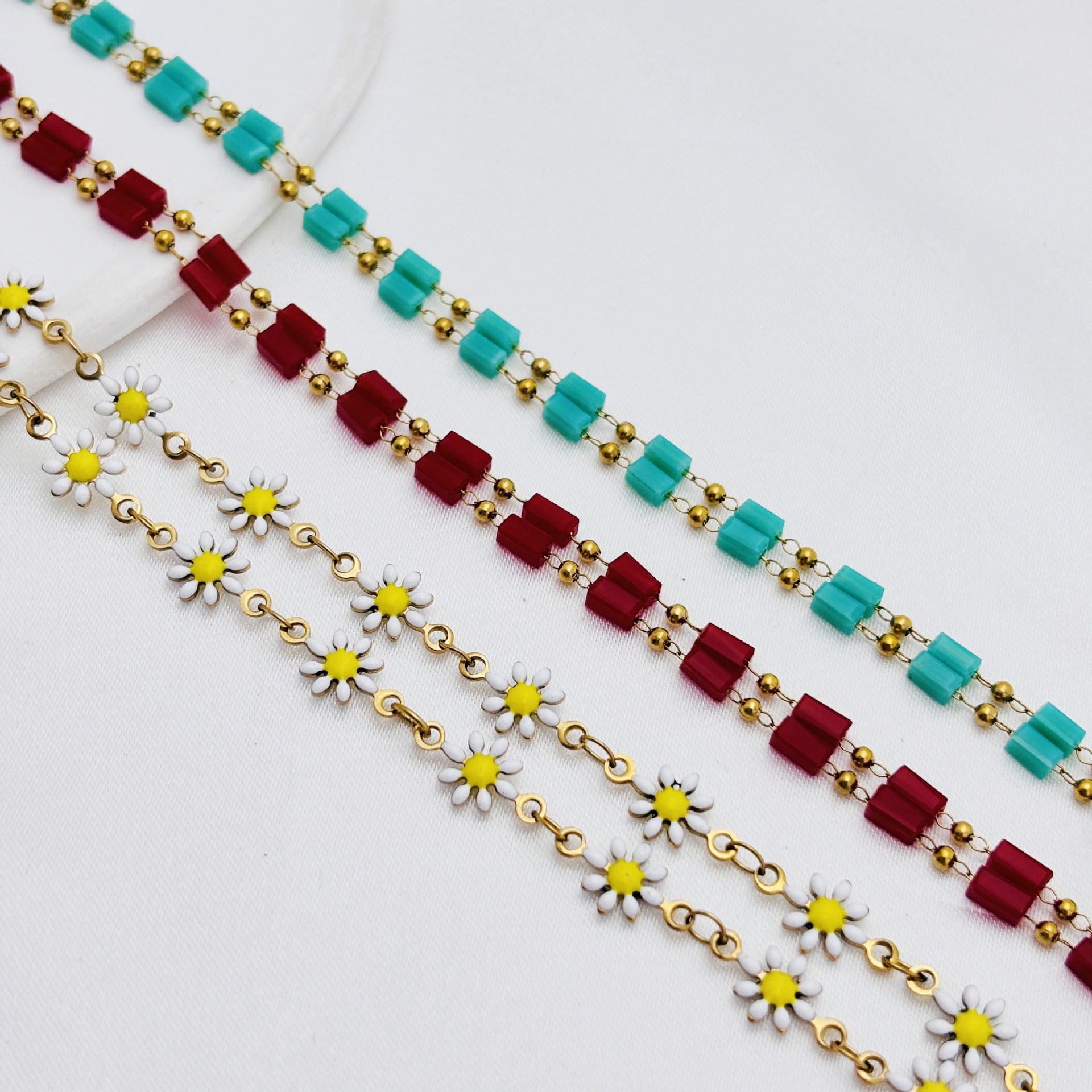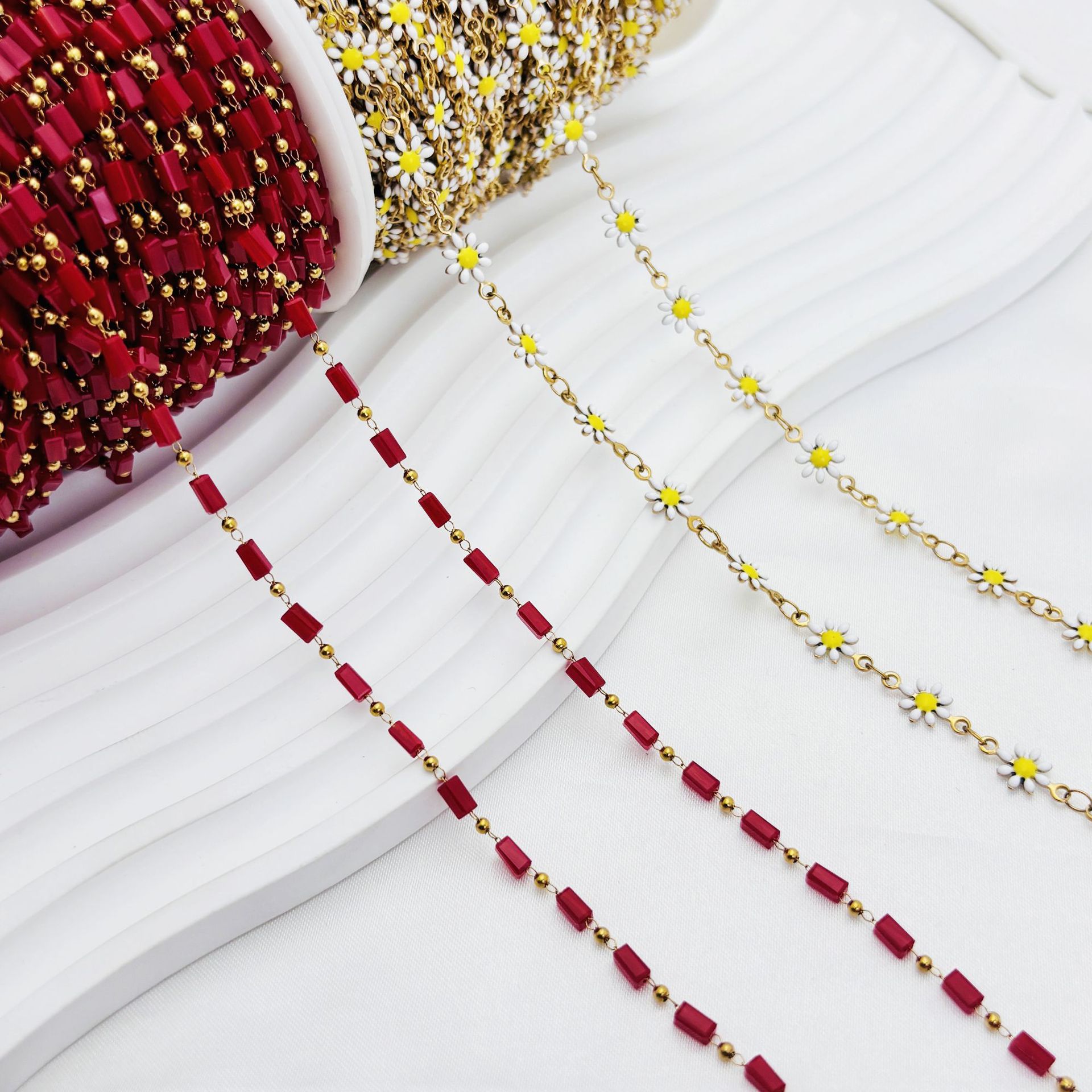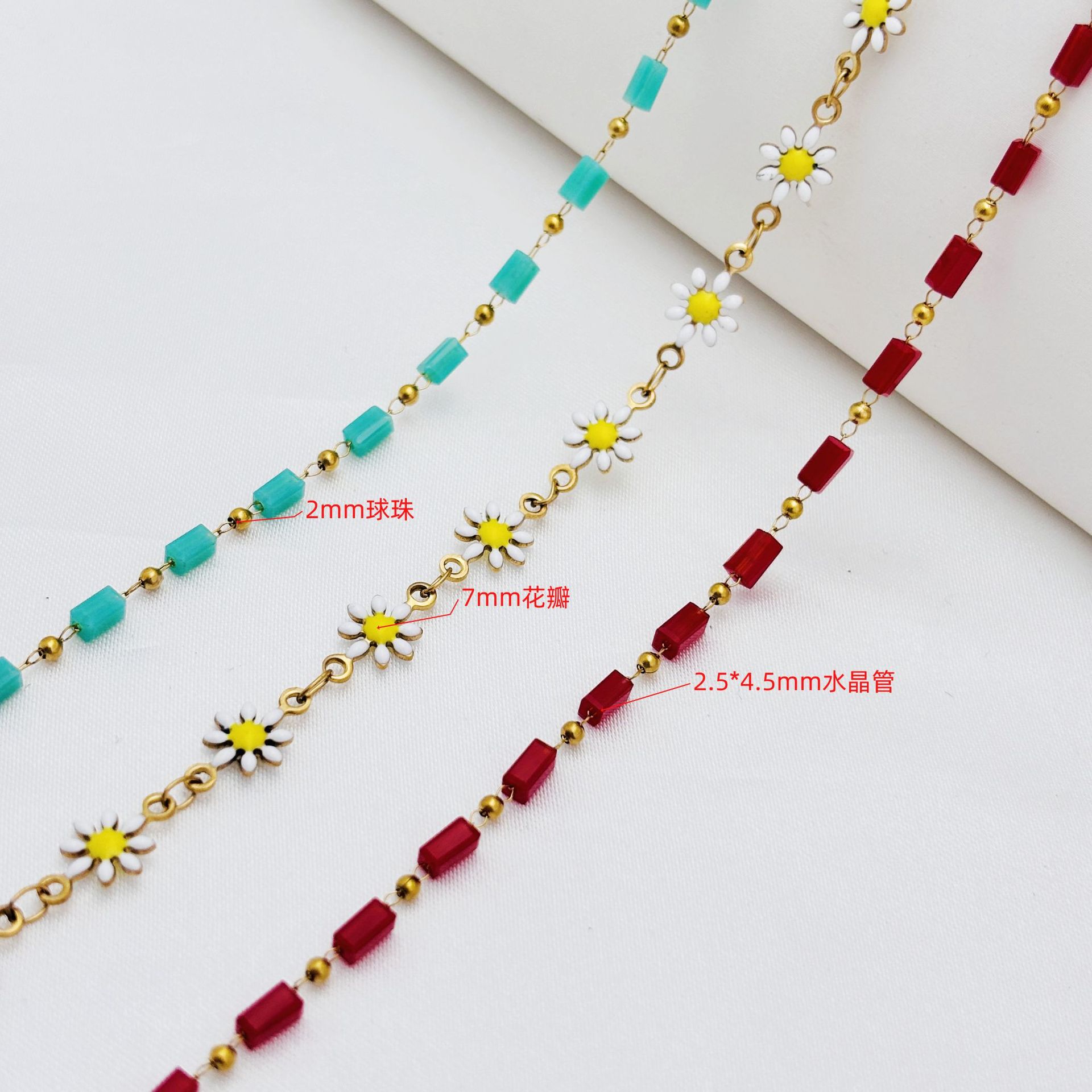 Europe and the United States cross-border spring and summer enamel oil drop floret stainless steel chain diy daisy jewelry color crystal chain