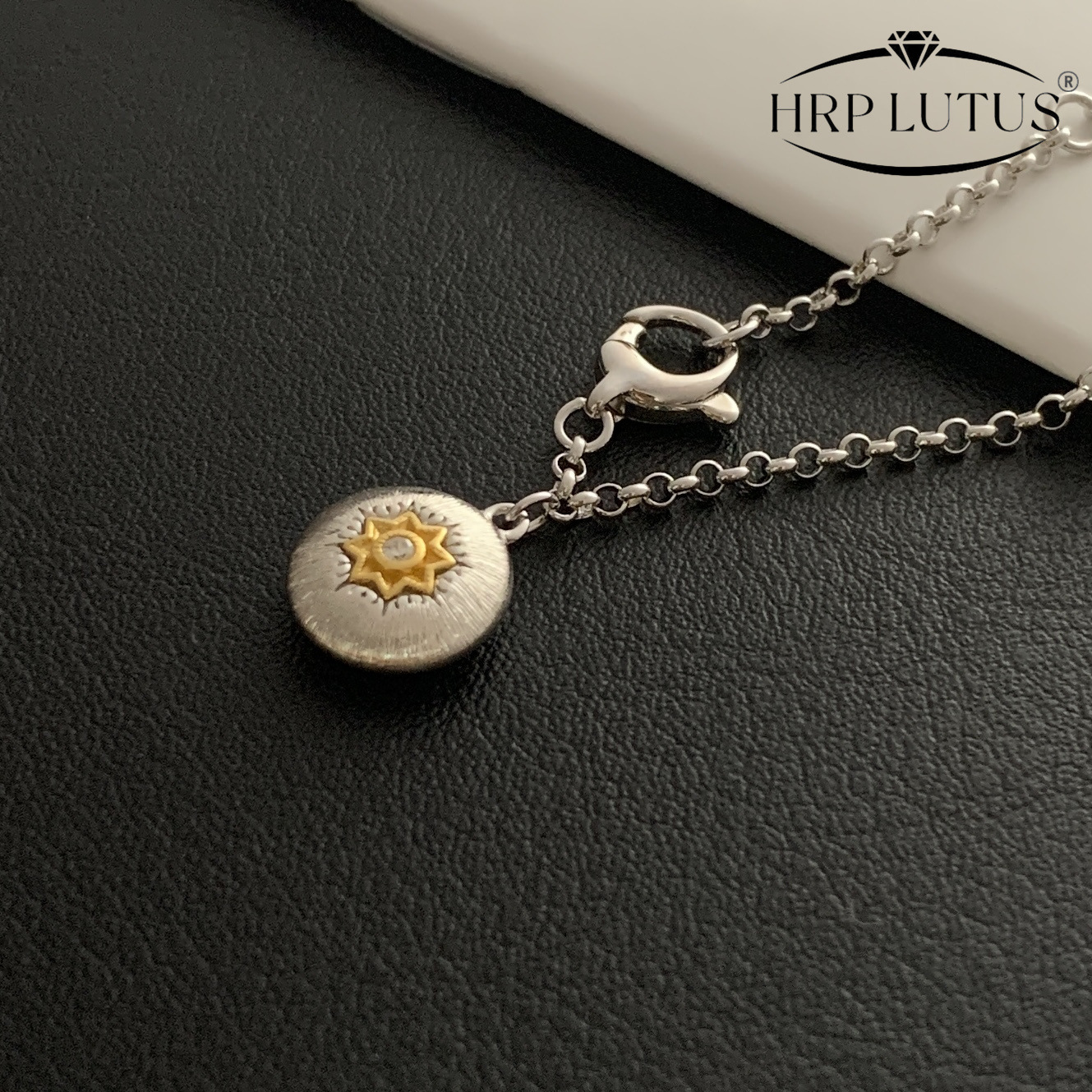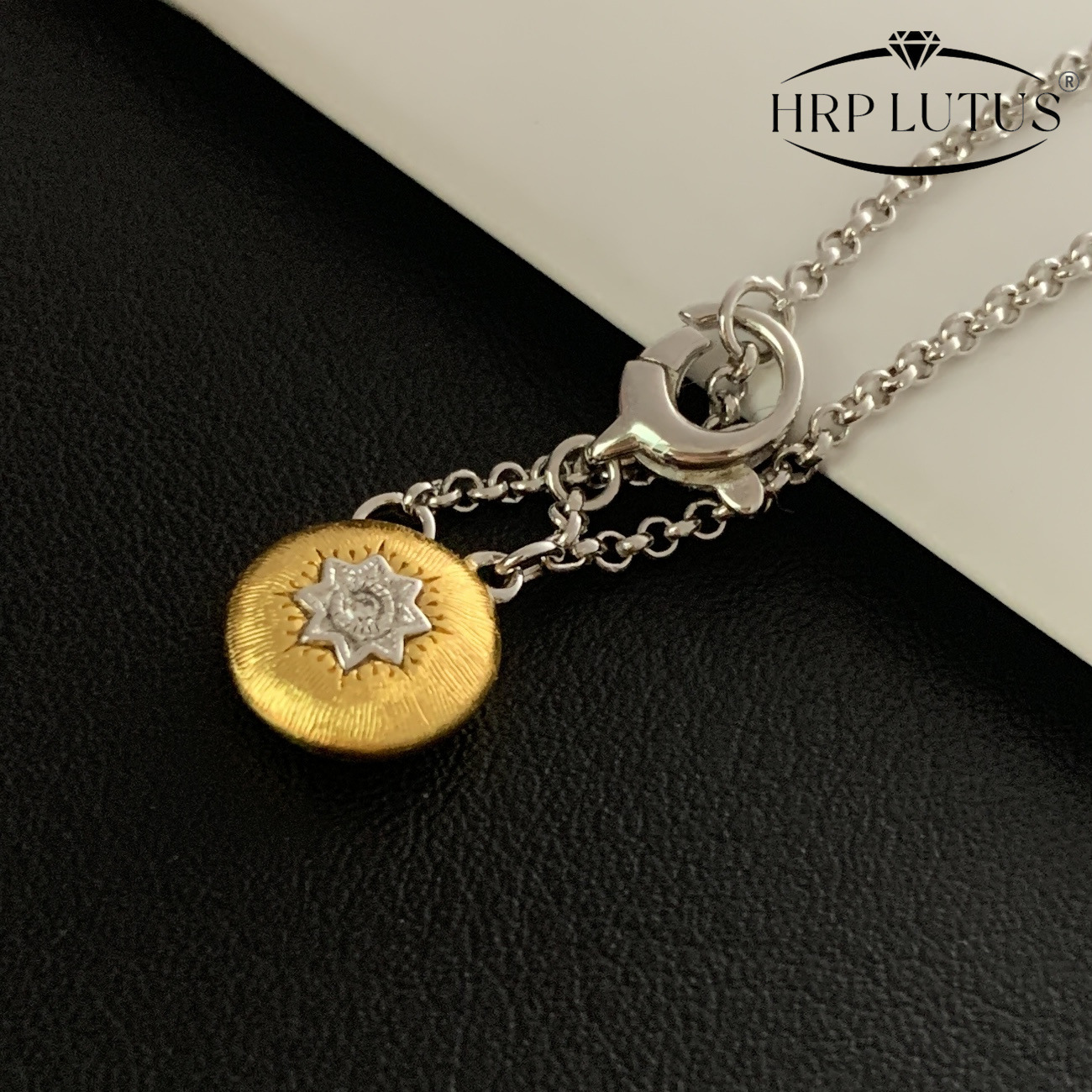MACRI CLASSICA Necklace Eight Mans Star Disc Color-block Pendant Italian Brushed Plated 18k Textured Gold