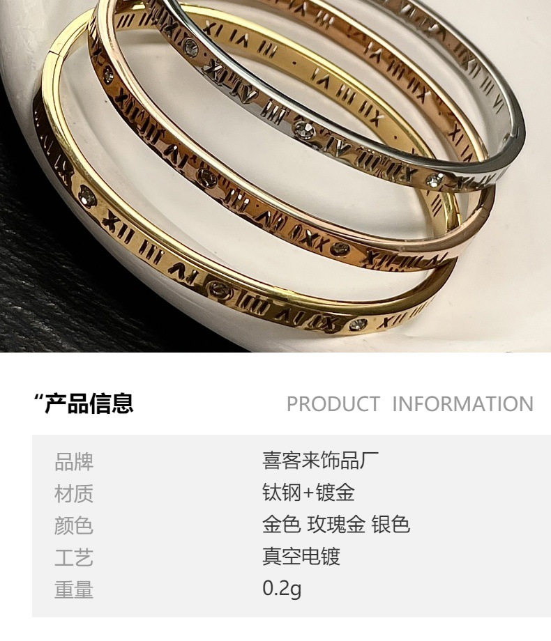 High-grade Roman Numerals Bracelet Women's Bracelet Titanium Steel Bracelet Zircon Bracelet Light Luxury Niche Bracelet Exquisite