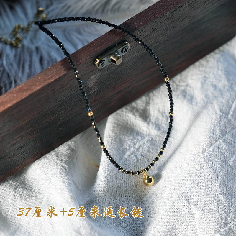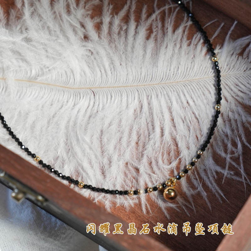 Shining Black Gold Stone Titanium Steel Beads with Crystal Copper Beads Gold-Plated Exquisite Pendant Necklace Fashion Trend