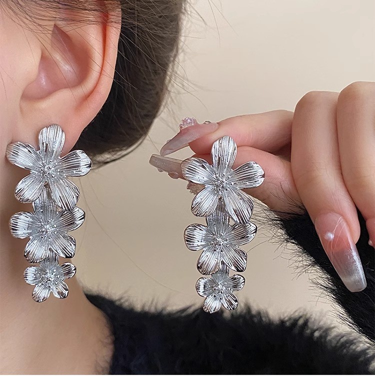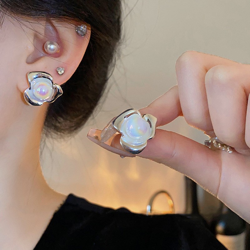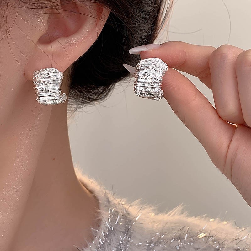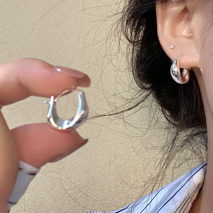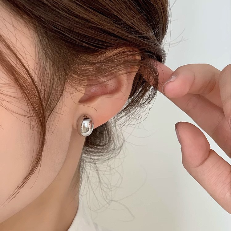 Silver Pigment Ring Earrings Niche Design High-end Ear Ring Female Earrings 2024 New Explosive Exaggerated Circle Earrings