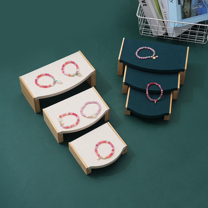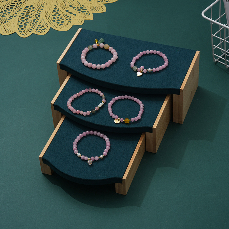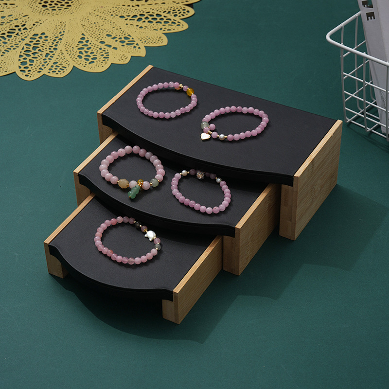 Bamboo wood simple three-piece jewelry display rack bracelet bracelet storage rack ring earrings jewelry rack wholesale