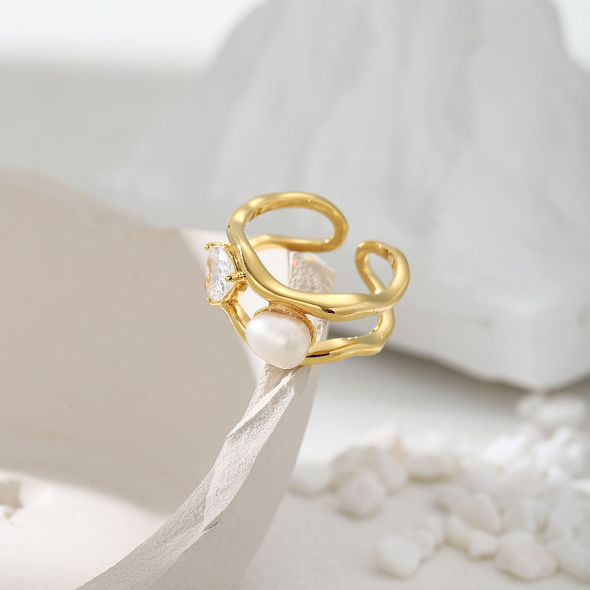 Bailing Fashionable Natural Pearl Ring Designer Creative Ins Popular Live Broadcast Best-Selling Ring Ring Jewelry