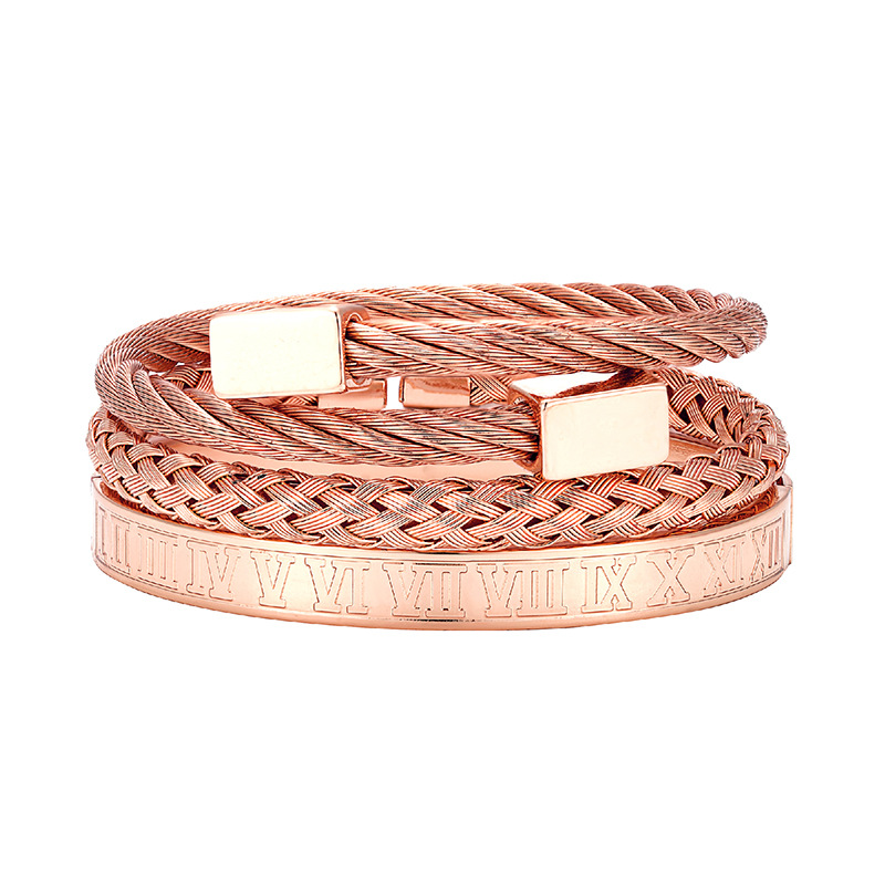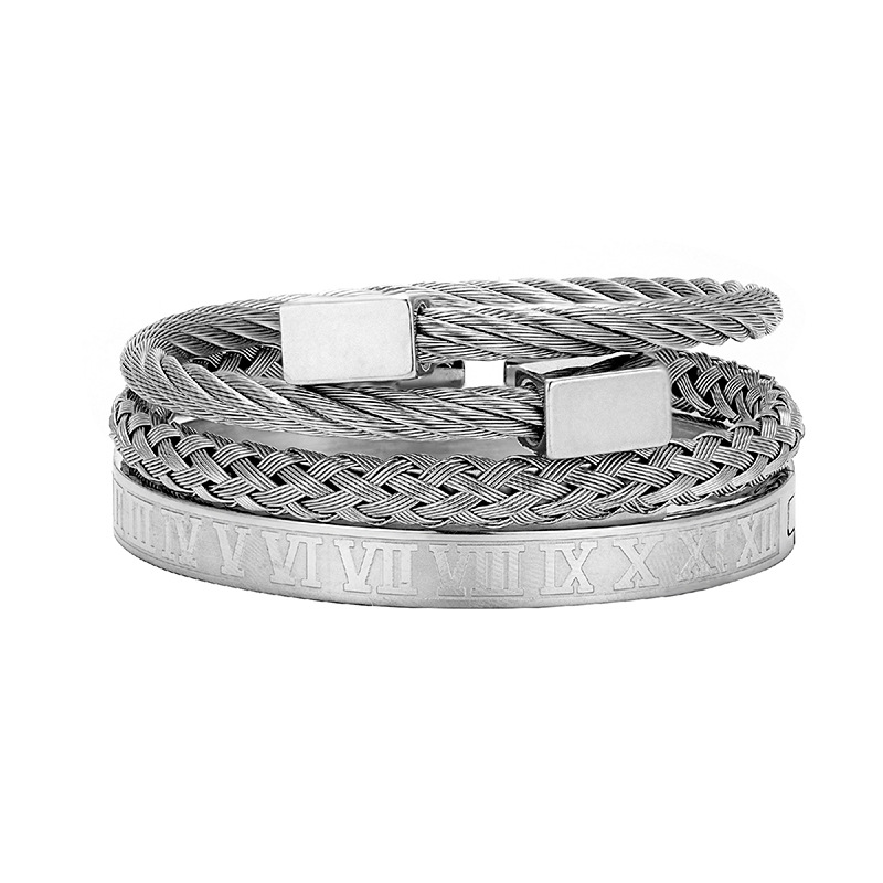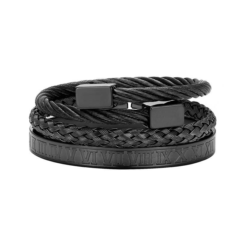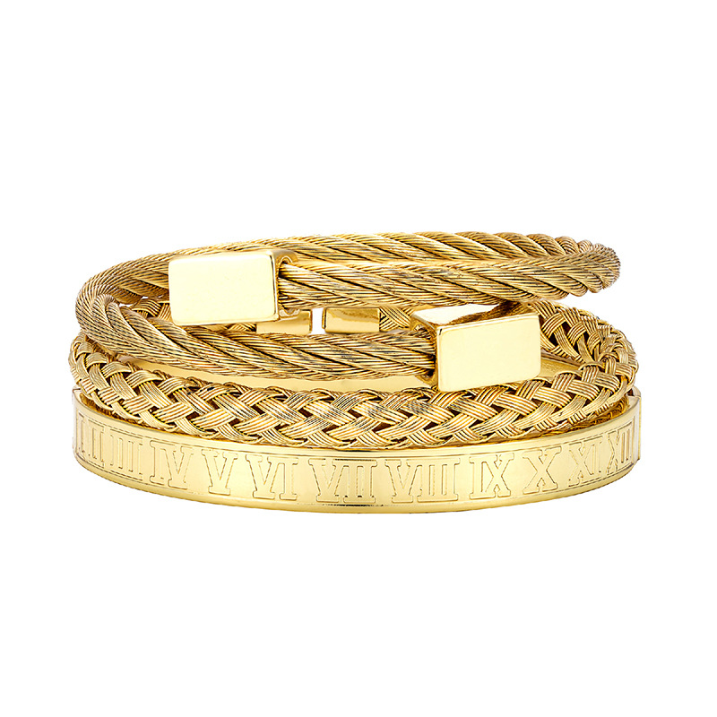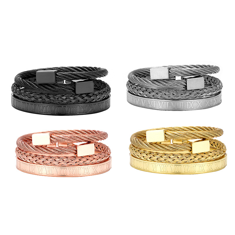 Europe and the United States cross-border retro retro trend stainless steel winding three-color square bracelet bracelet wholesale bracelet suit