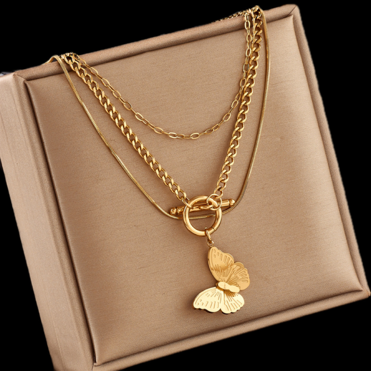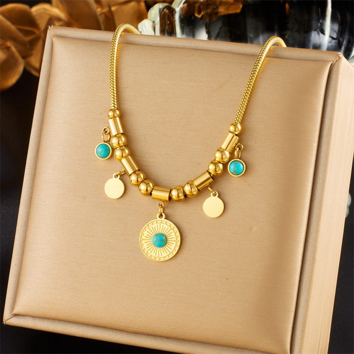 New cross-border bohemian turquoise titanium steel non-fading ethnic style pendant necklace women's gold-plated jewelry