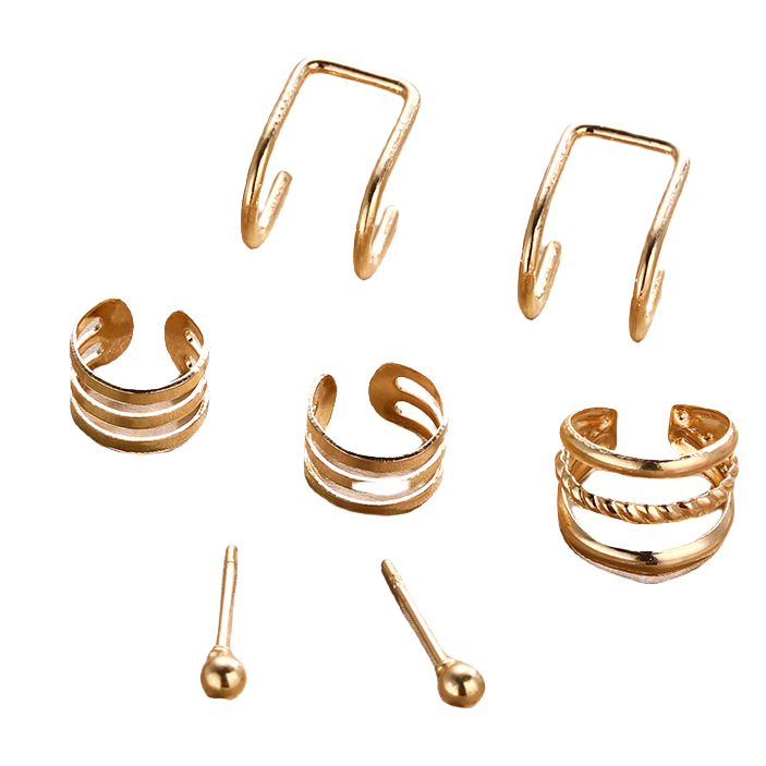 Cross-border Retro European and American Hollow Creative Simple Multi-layer Ear Clip suit Gold Women's Ear Clip Earrings 7-piece Set