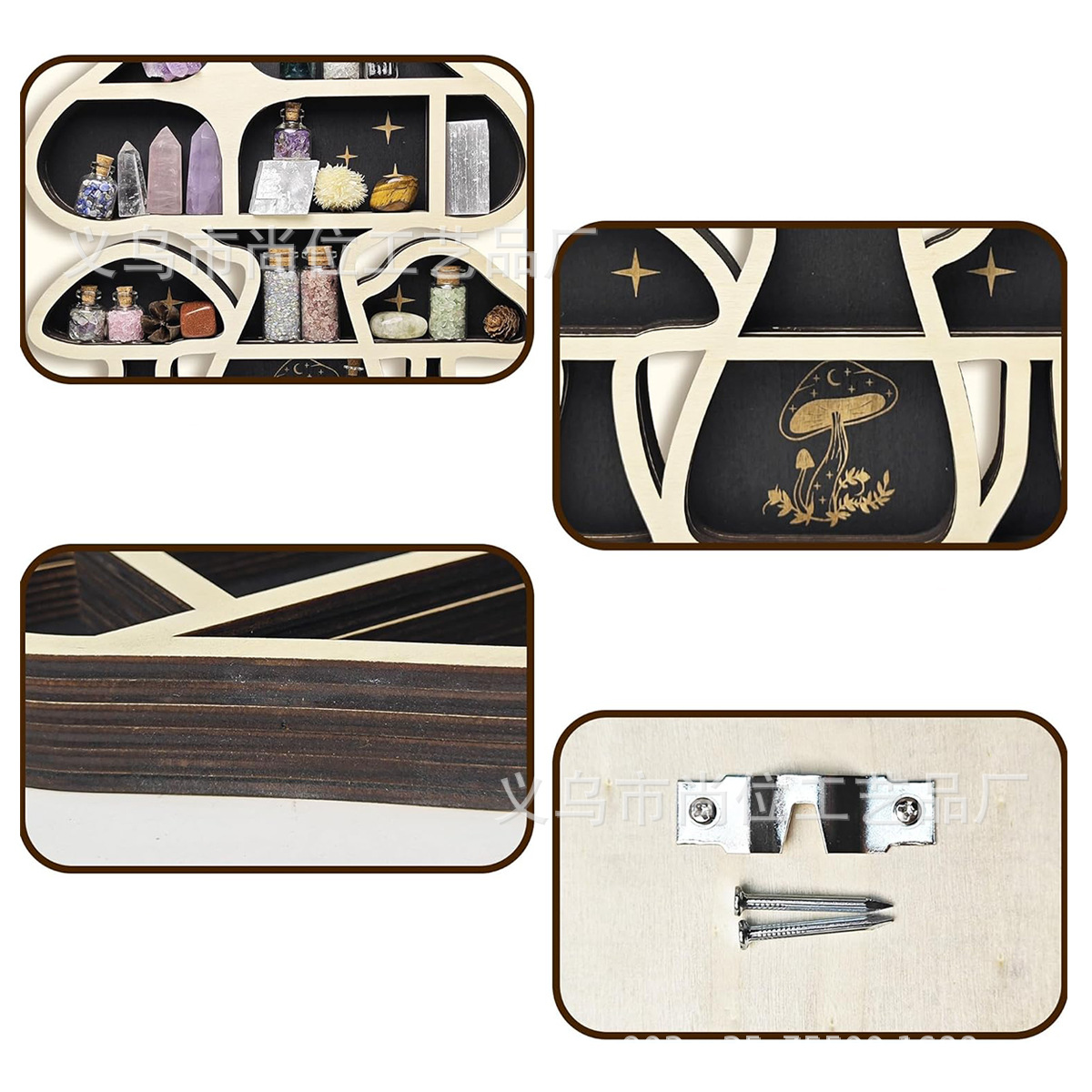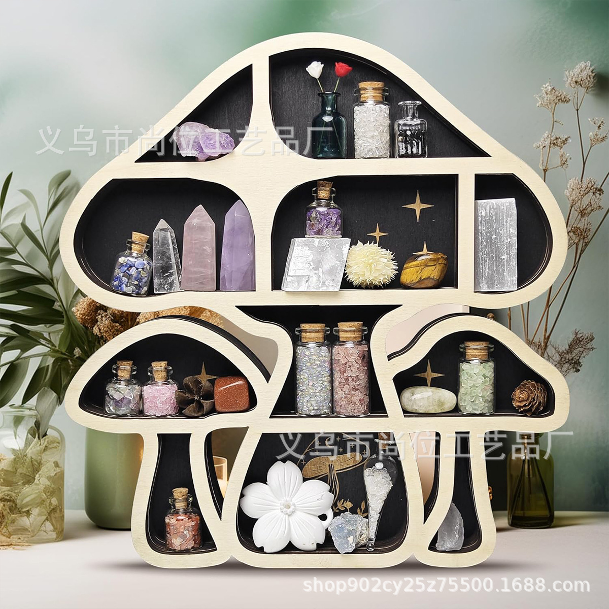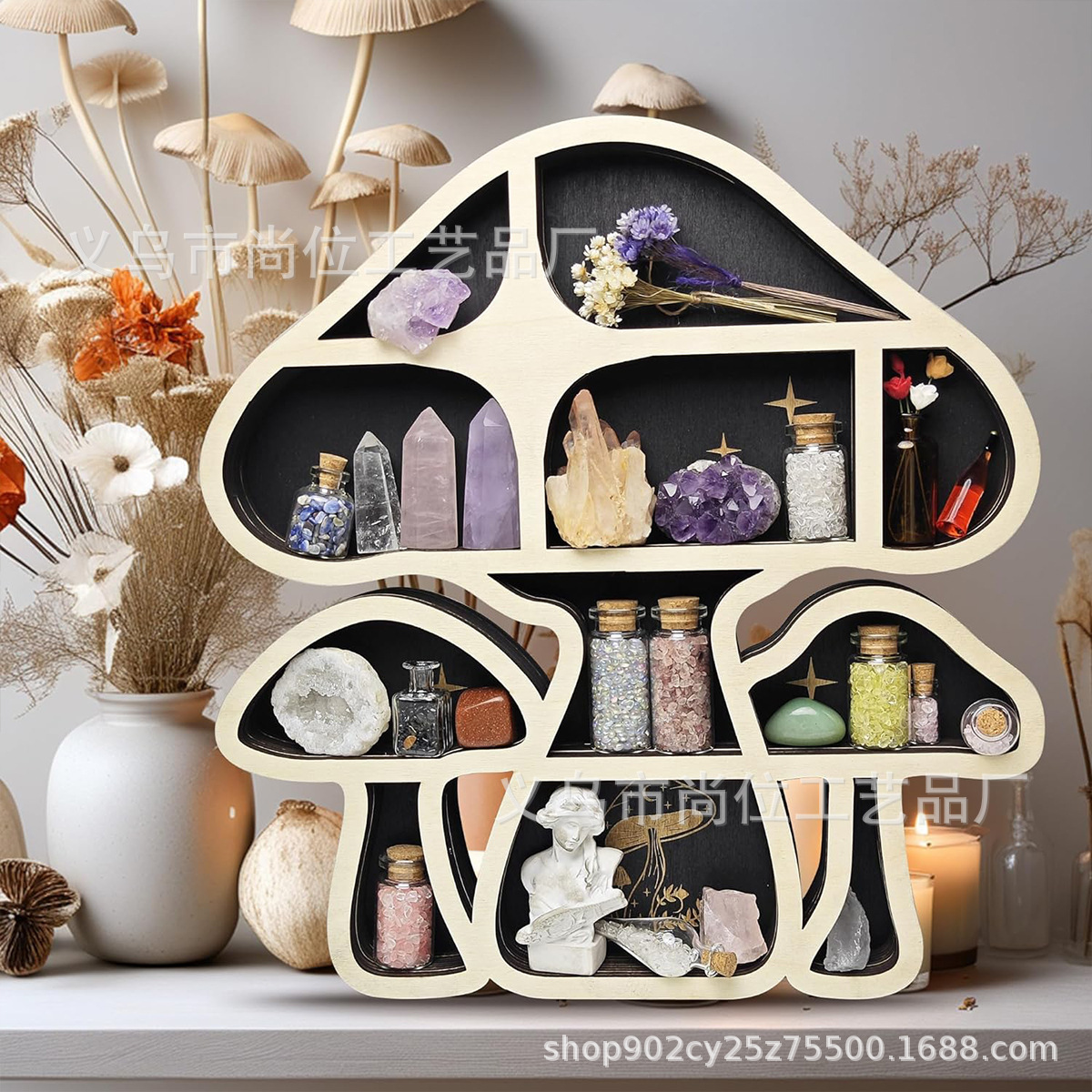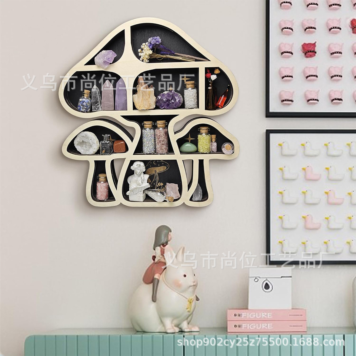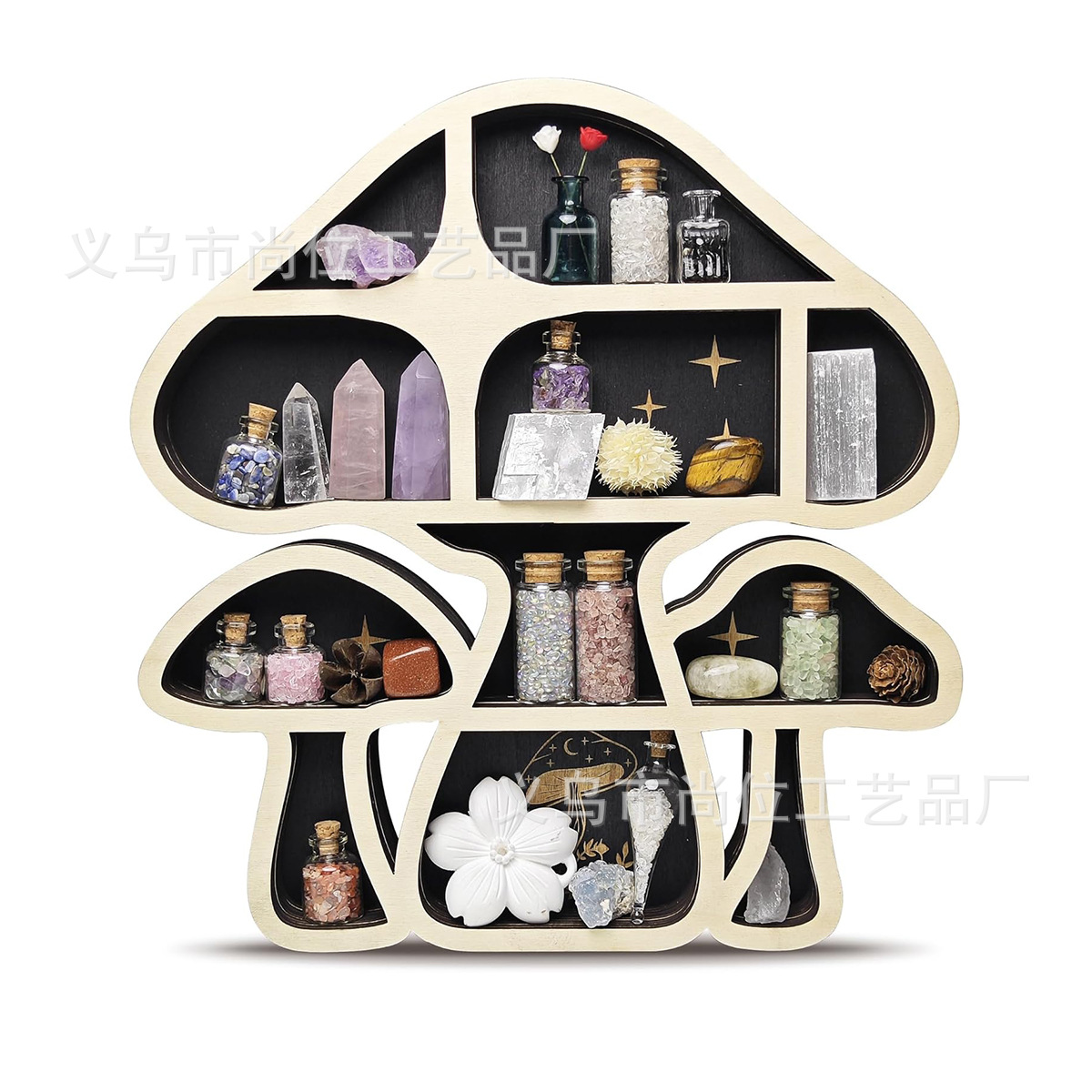 In-Stock Wooden Mushroom Rack Crystal Wall Hanging Rack Storage Rack Meditation Ornament Multifunctional Styling Storage Rack Wooden
