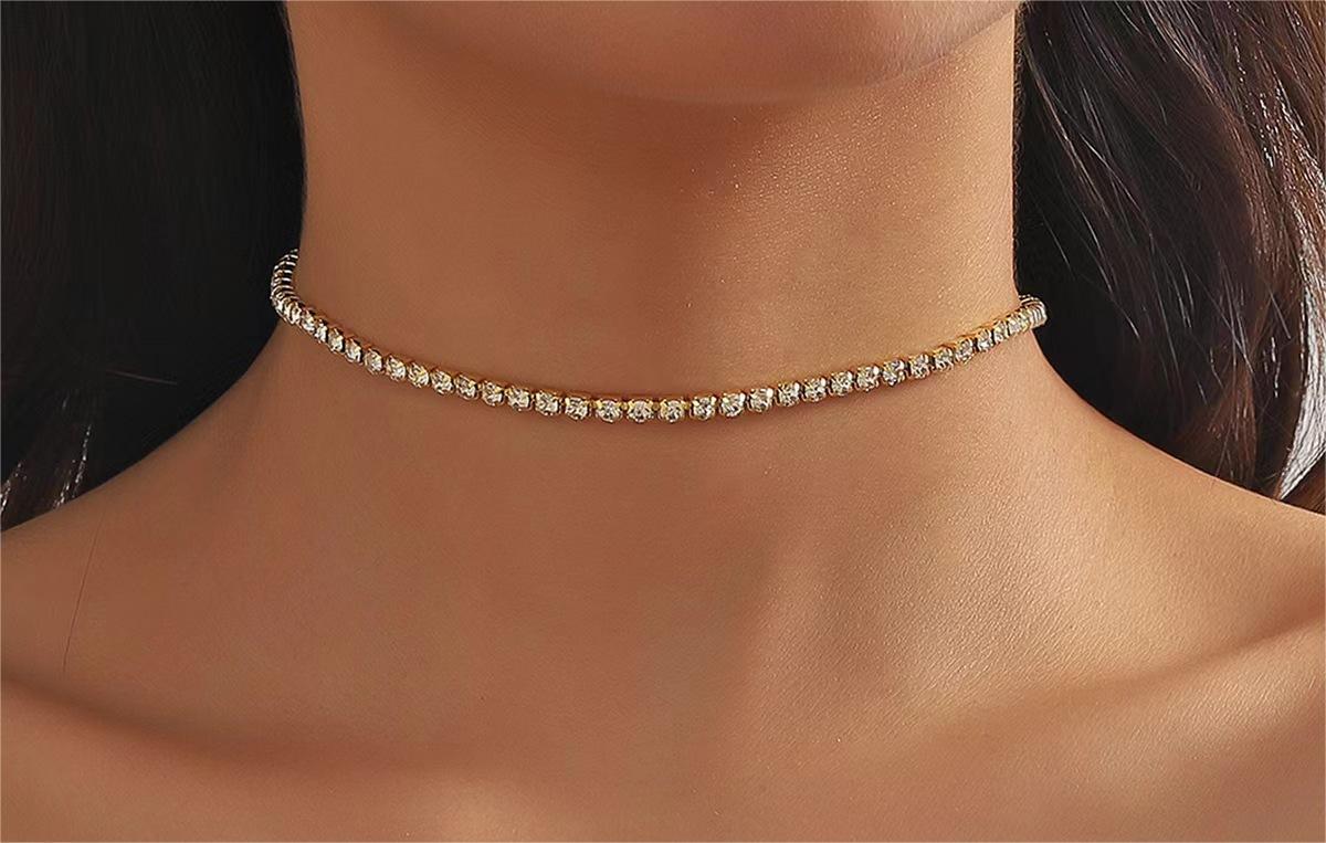 Diamond Simple European and American Necklace Women's Neck Single Row Sexy Jewelry Flash Diamond Neck Chain Clavicle Chain