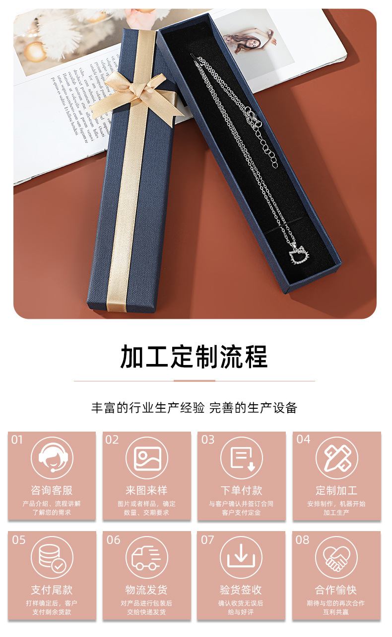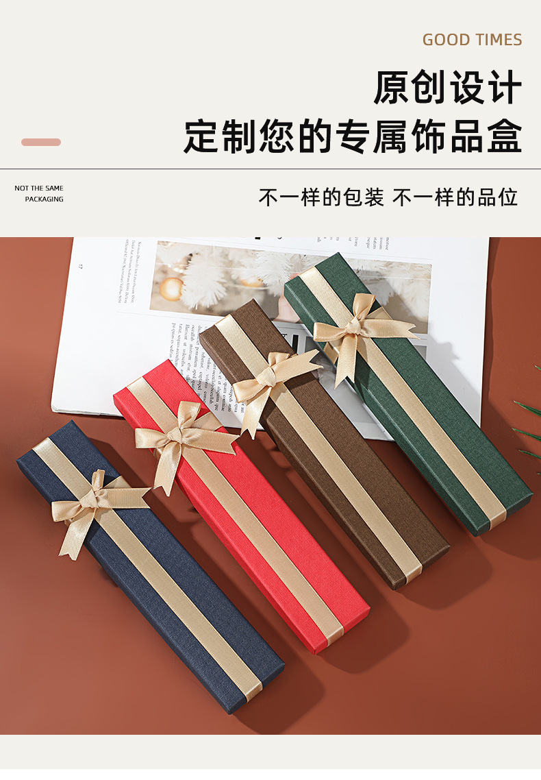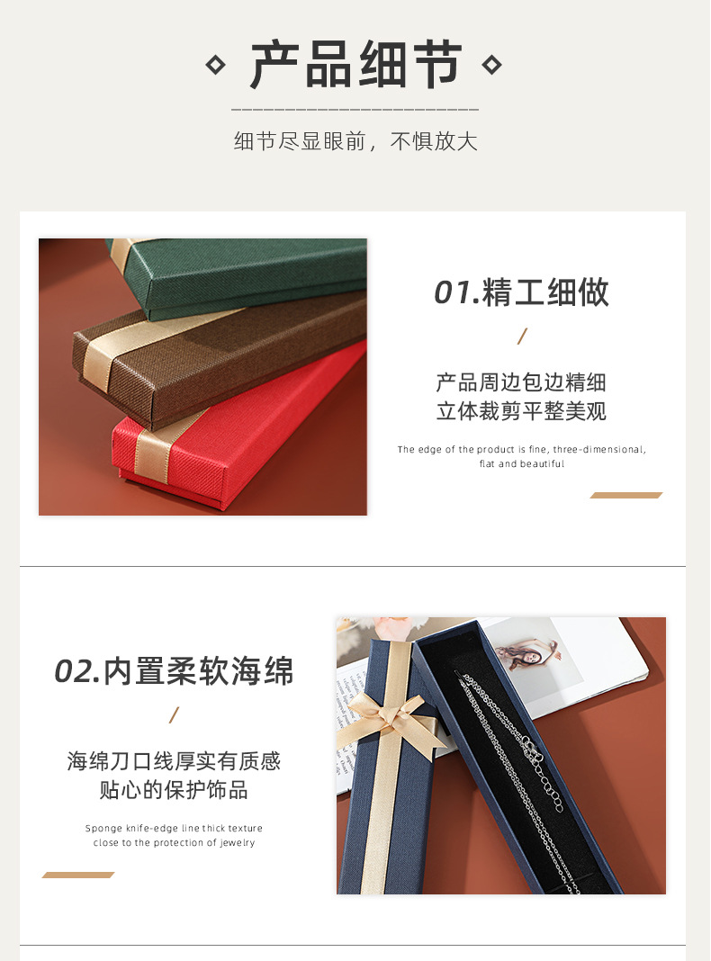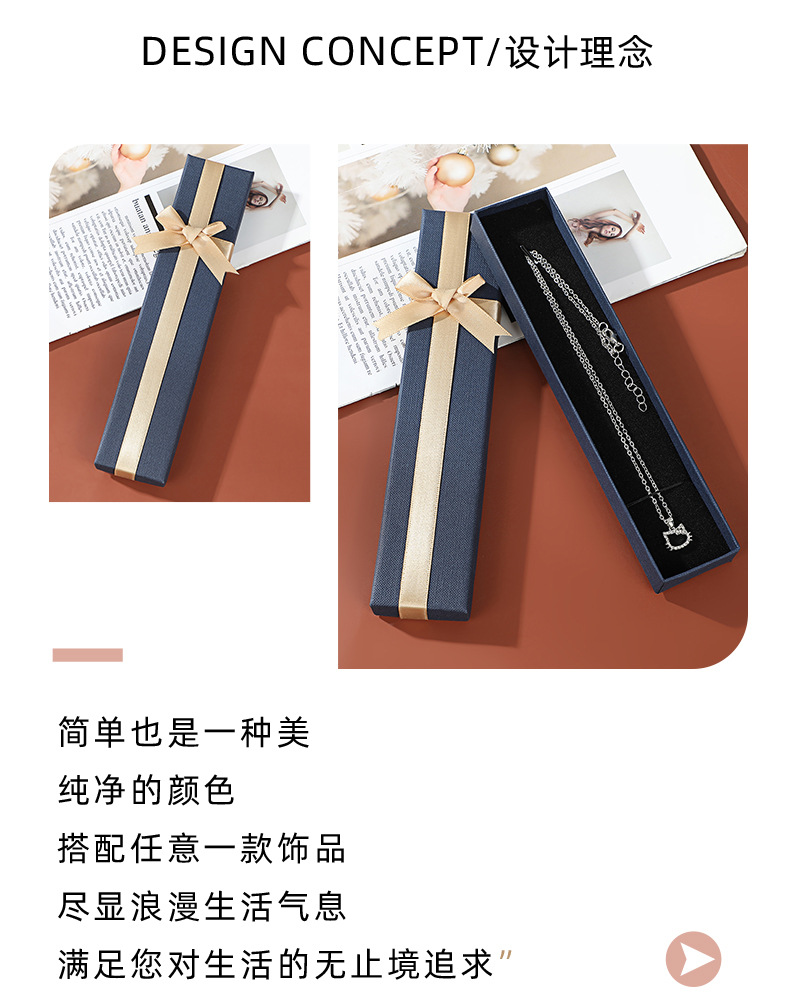Customized Jewelry Necklace Bow Jewelry Long Box Embossed High-End Accessible Luxury Heaven and Earth Cover Gift Gift Packaging Box