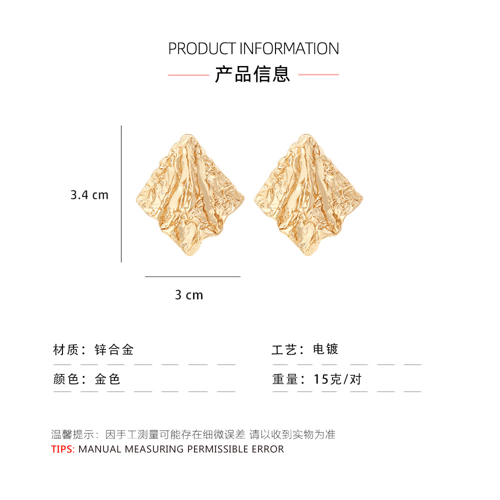 European and American Fashion Simple Geometric Texture Alloy Earrings Personalized All-match Pleated Metal Earrings Cross-border Earrings for Women