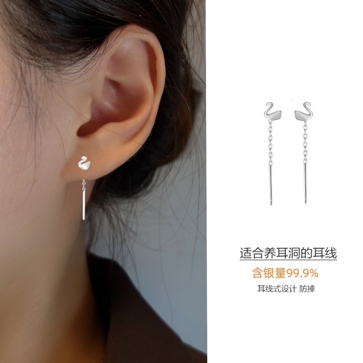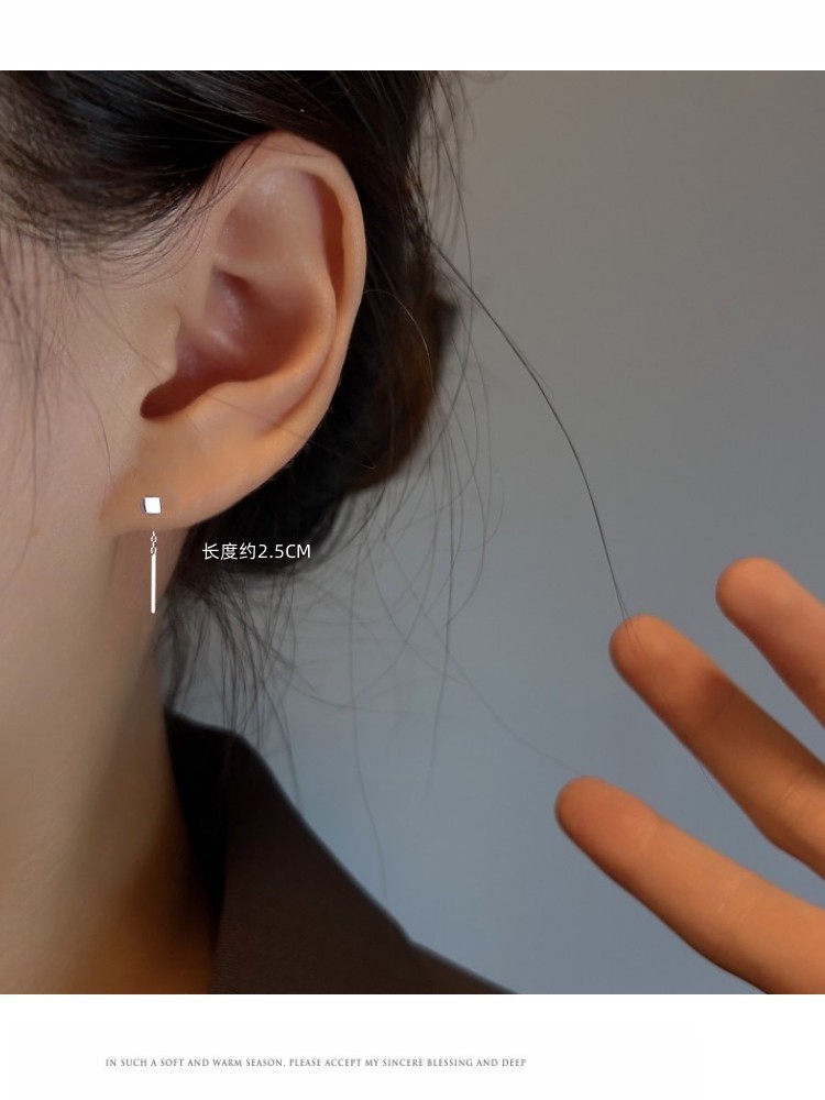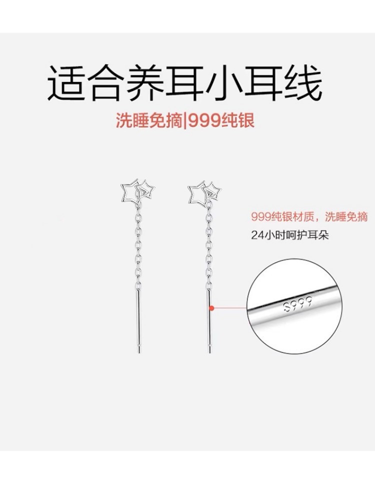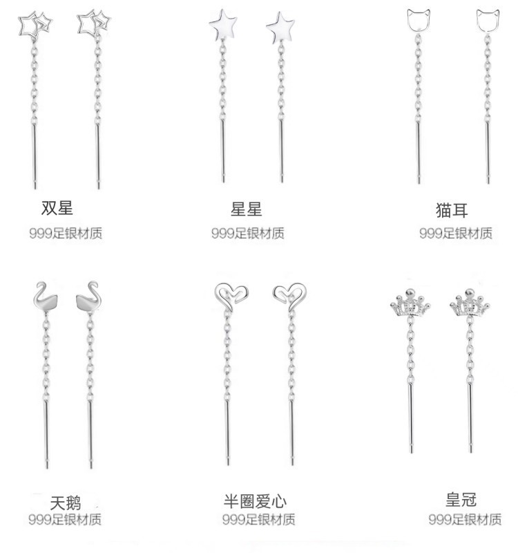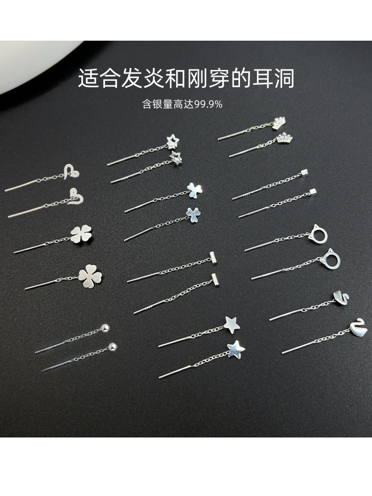 Happy ornament silversmith S999 silver earrings female 2.5cm long and short ear line ear hole thin face temperament earrings generation hair