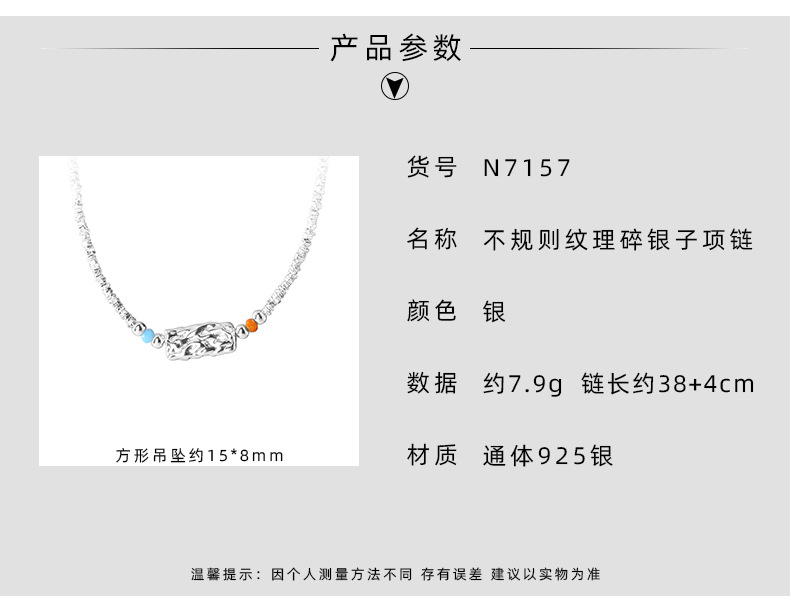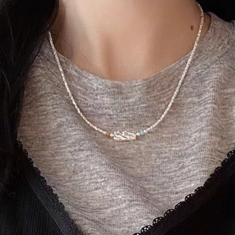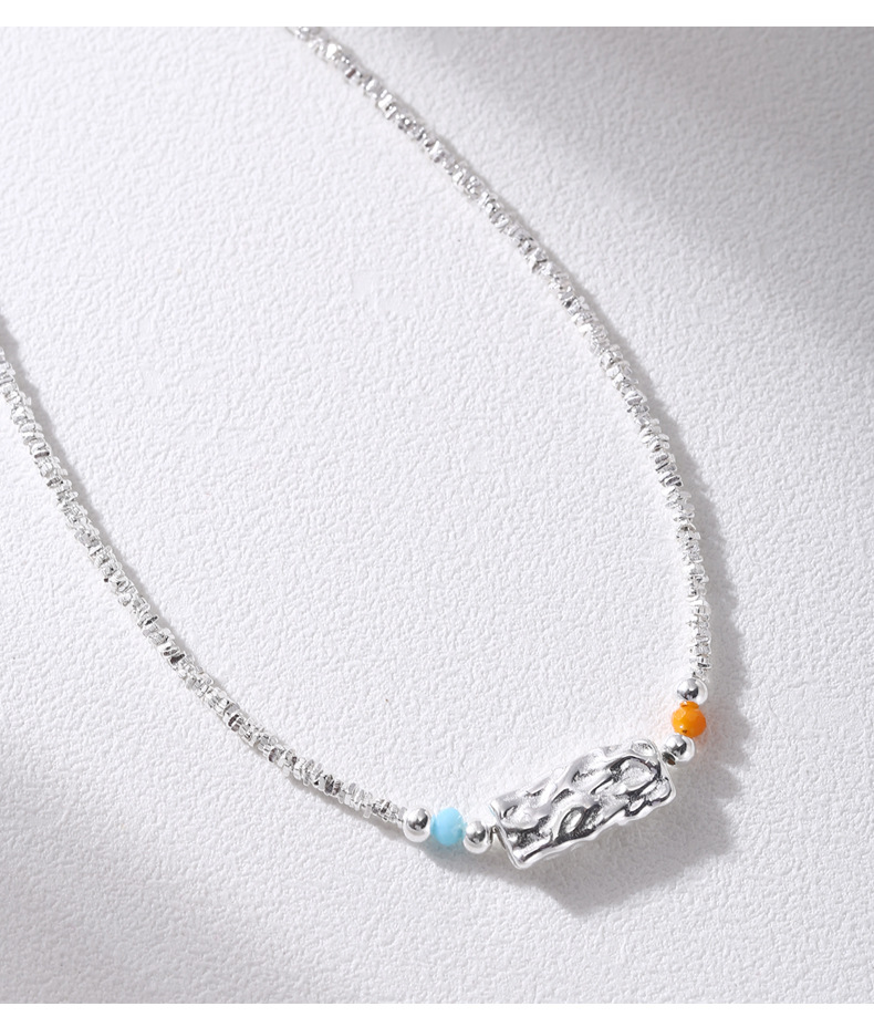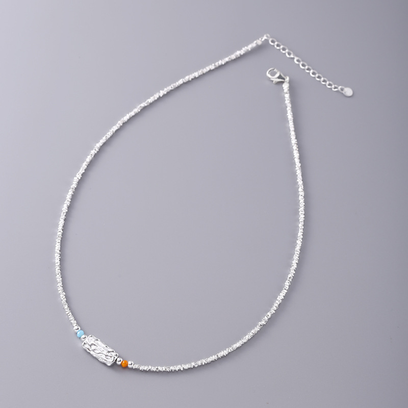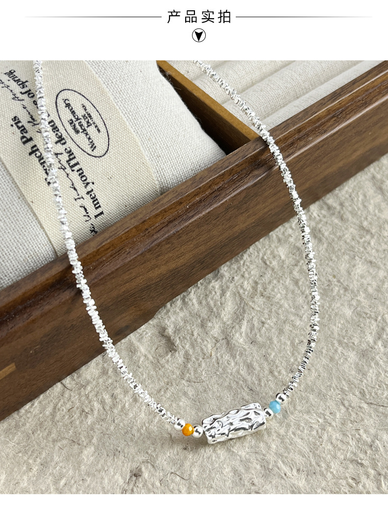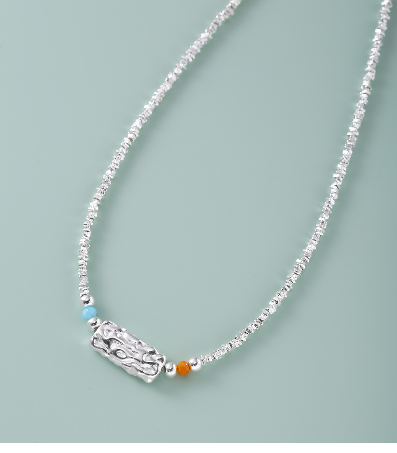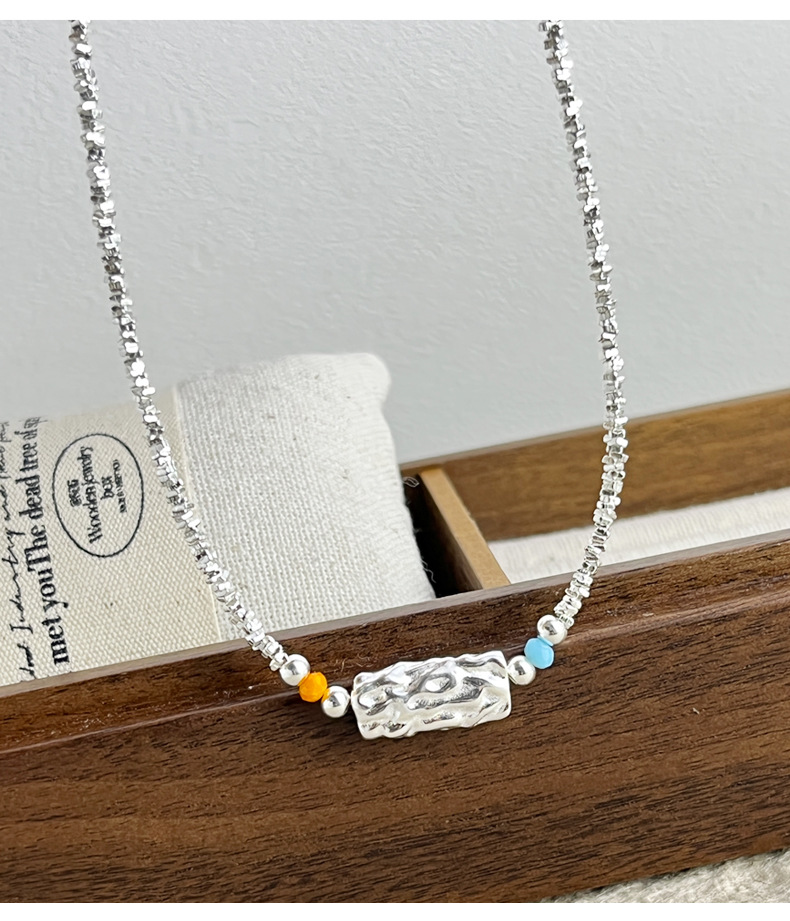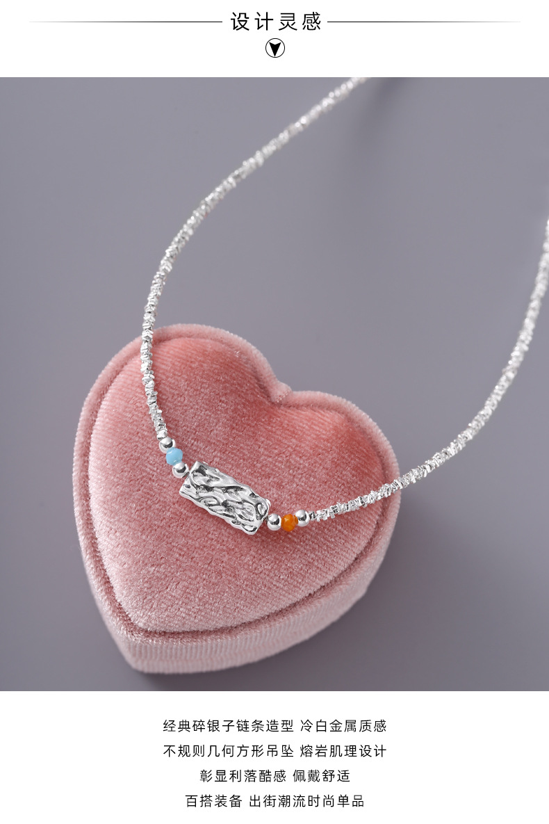 Broken Silver Square Necklace S925 Sterling Silver Handmade Color Clavicle Chain Bohemian Style Travel N7157
