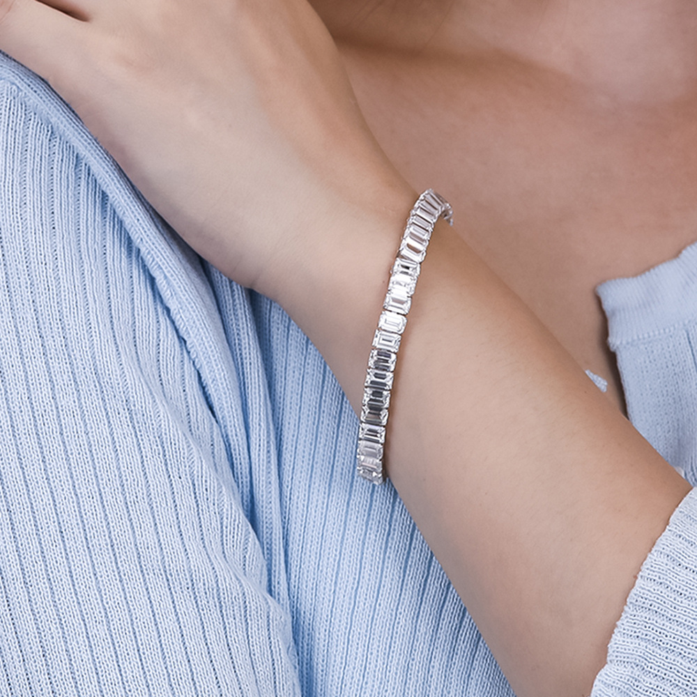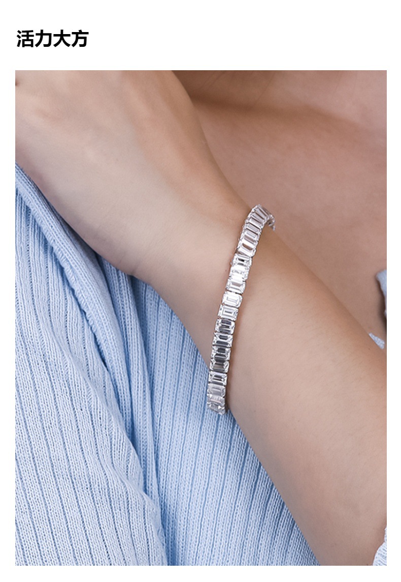 Cross-border European and American S925 Silver High Carbon Diamond Tennis Bracelet Luxury Heavy Industry Emerald Cut Diamond Candy Bracelet