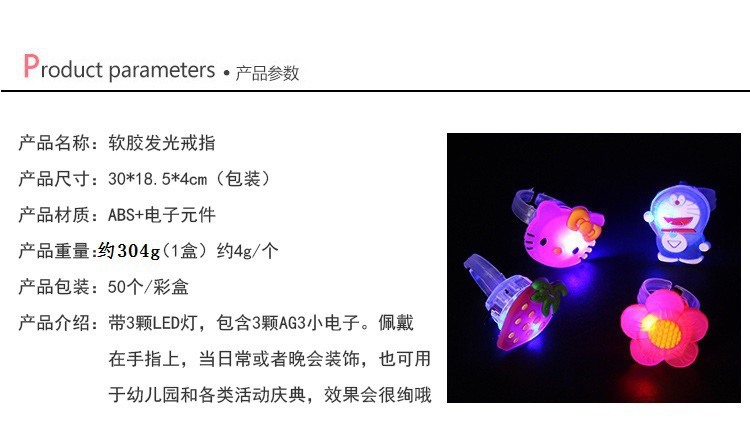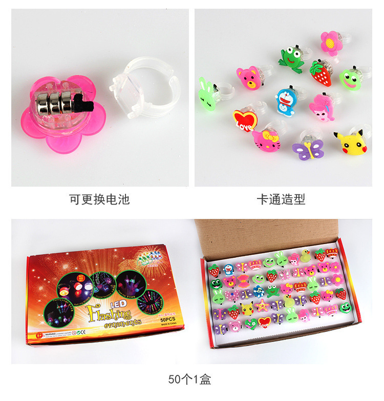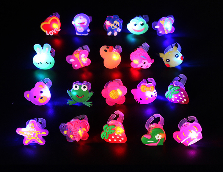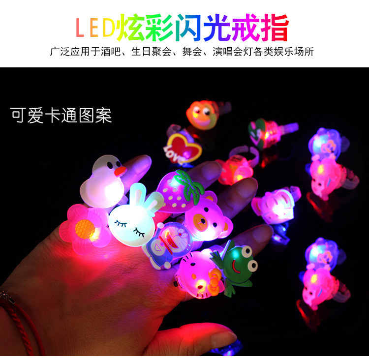 Glitter Soft Rubber Ring Cute Animal Glowing Ring Glitter Finger Light Christmas Toy Cartoon Small Gift