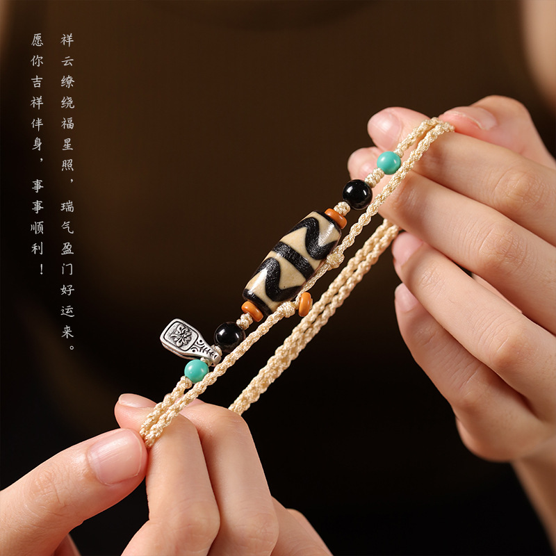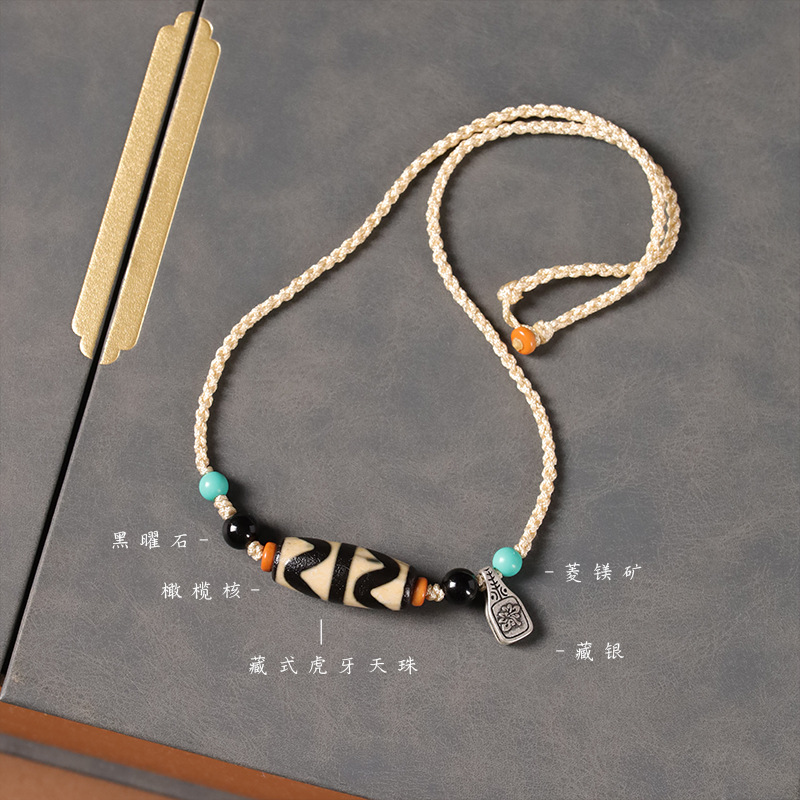 color: Xizang tiger tooth dzi beads braided rope necklace