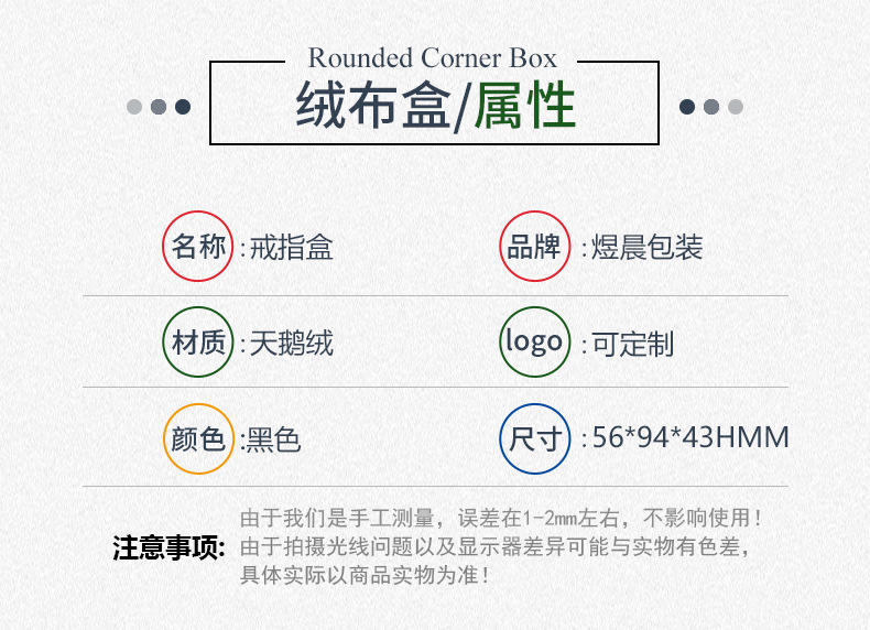 Specifications and models: Black; ring box: 56*94 * 43hmm