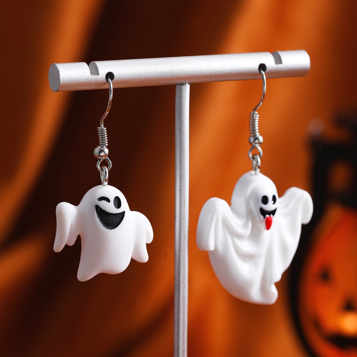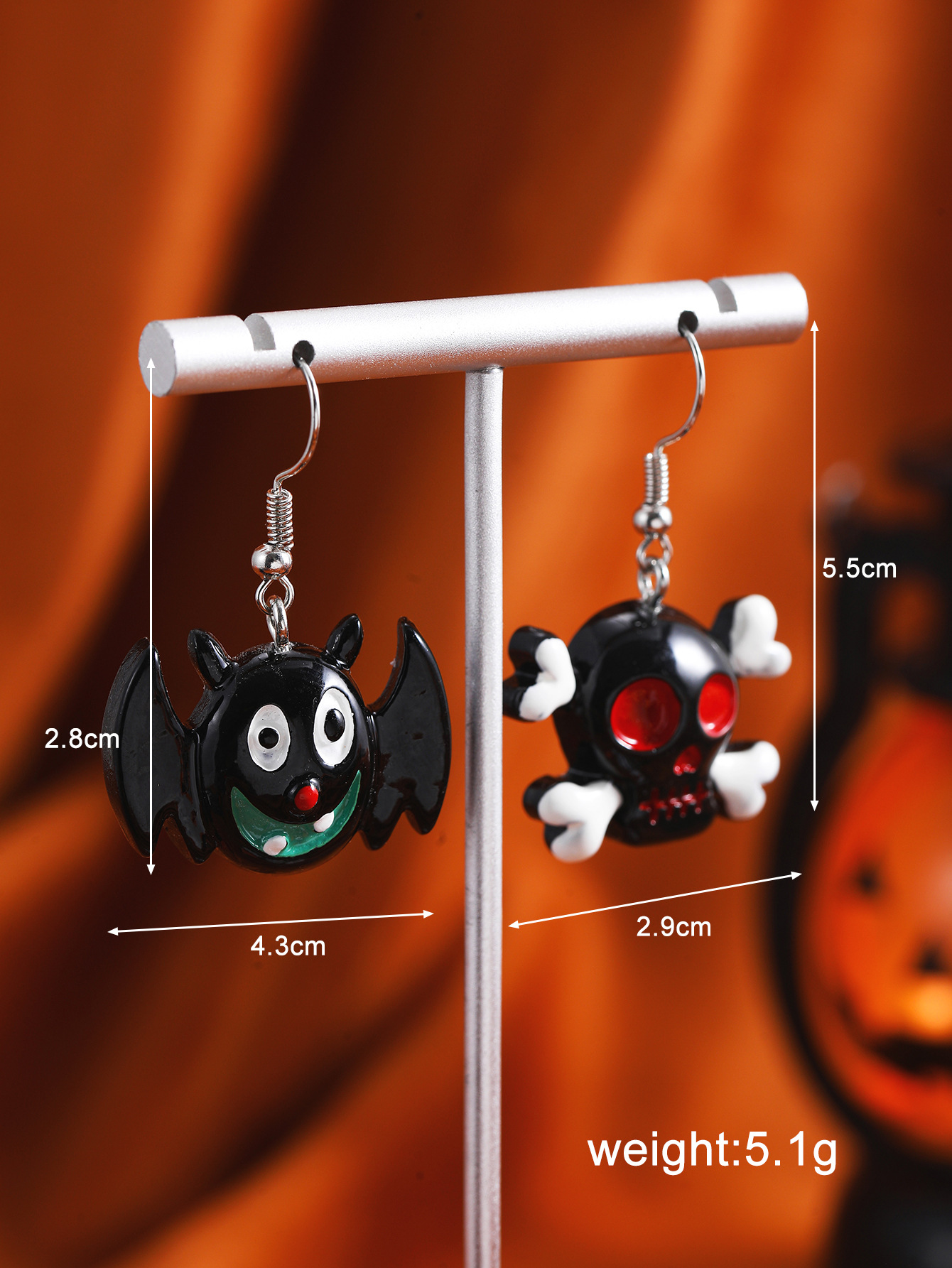 European and American Cross-border Jewelry Halloween Funny Pumpkin Ghost Skeleton Bat Earrings Colorful Oil Dripping Playful Earrings Women